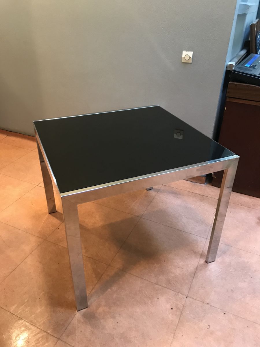 Piétement et pieds en métal chromé.