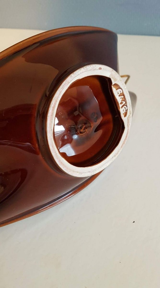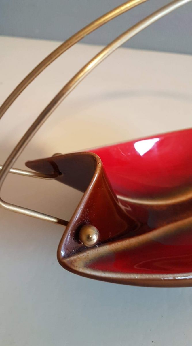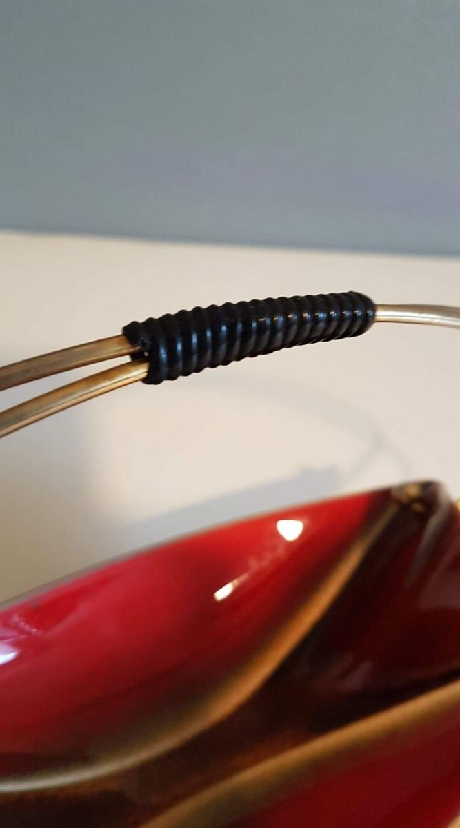 serviteur céramique avec poignée en métal doré vintage.