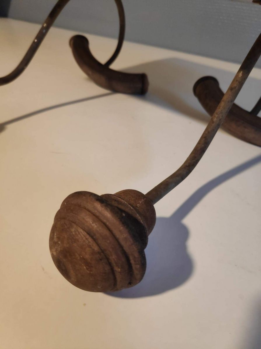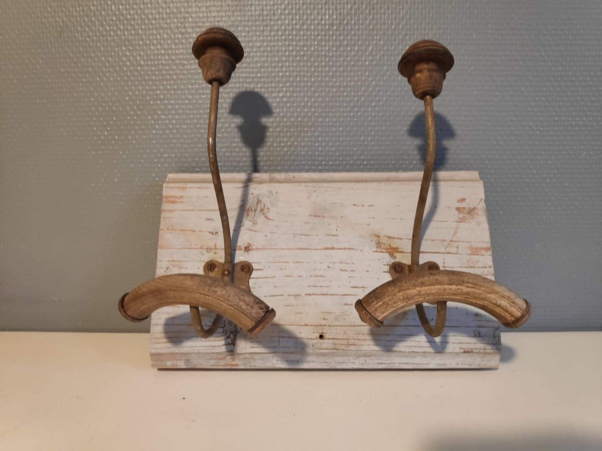porte-manteaux et chapeaux 2 patères métal et bois courbé début XXe