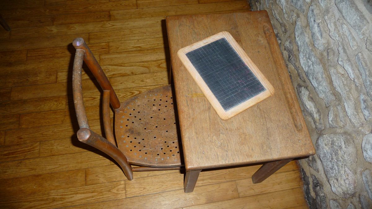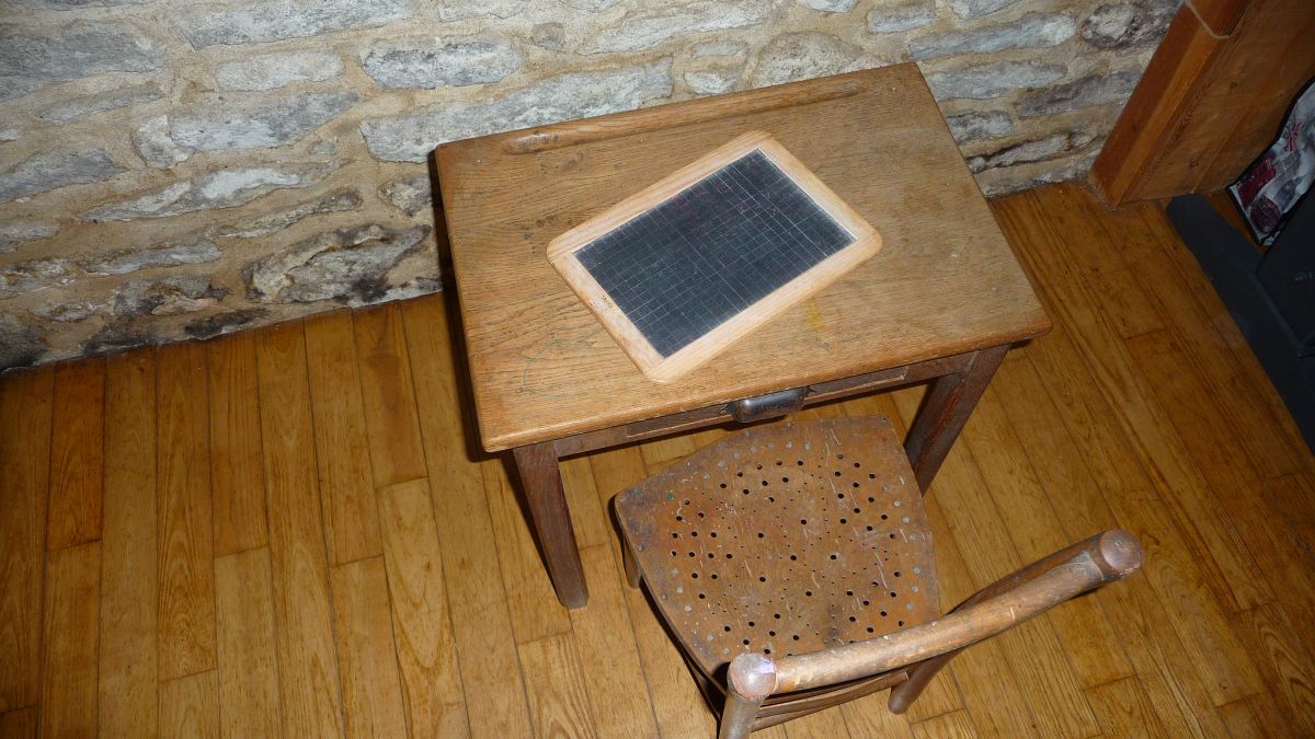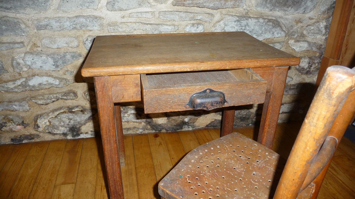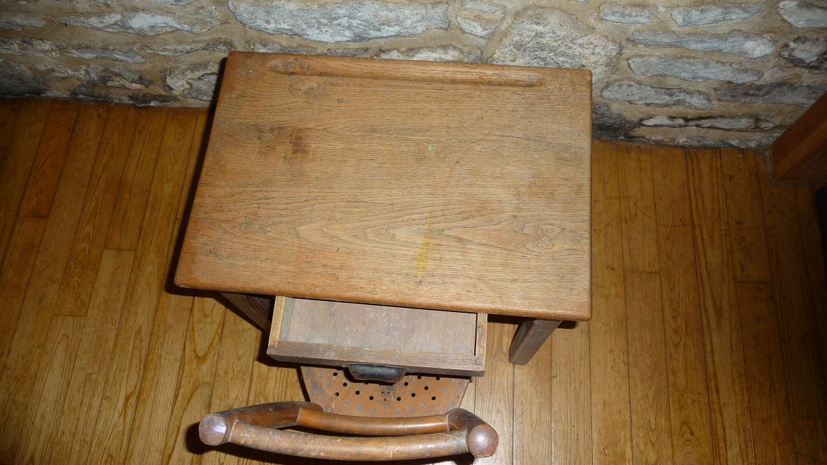 Ancien bureau d'écolier avec un petit tiroir qui fonctionne parfaitement et sa petite chaise, le tout en bois, bon état