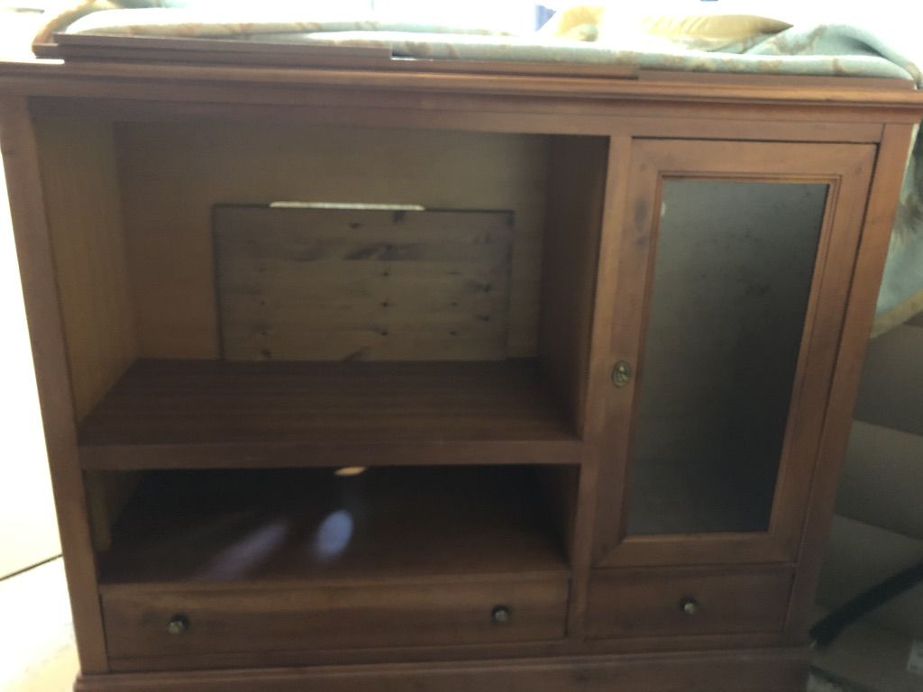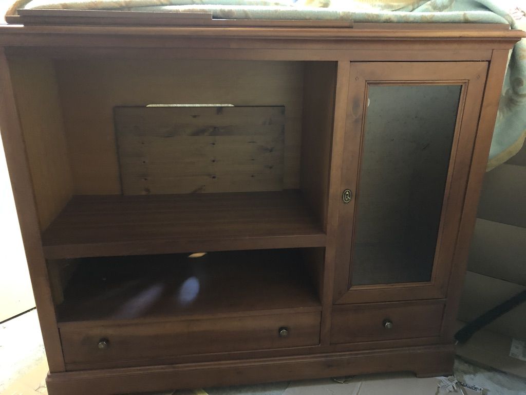 Meuble TV de fabrication artisanale en merisier massif.