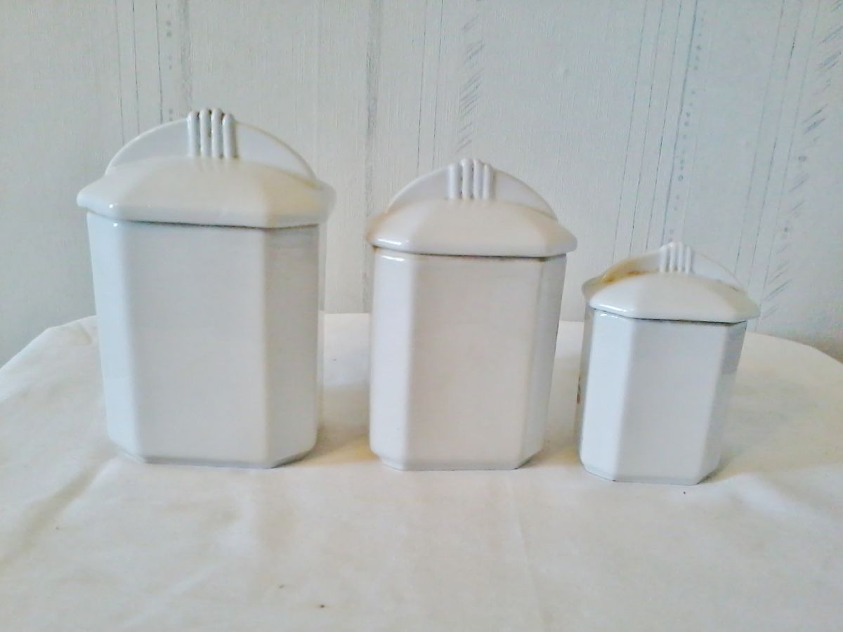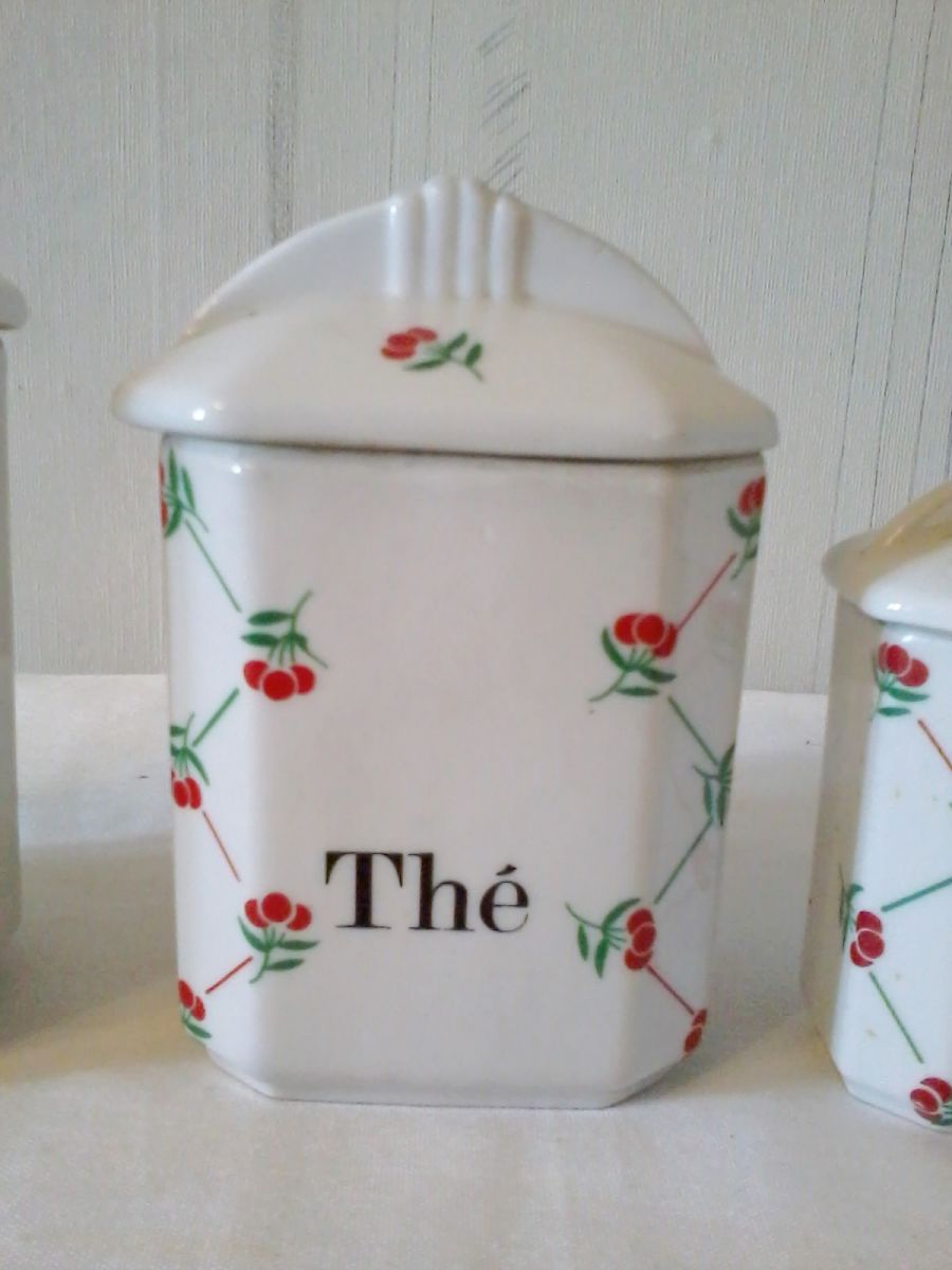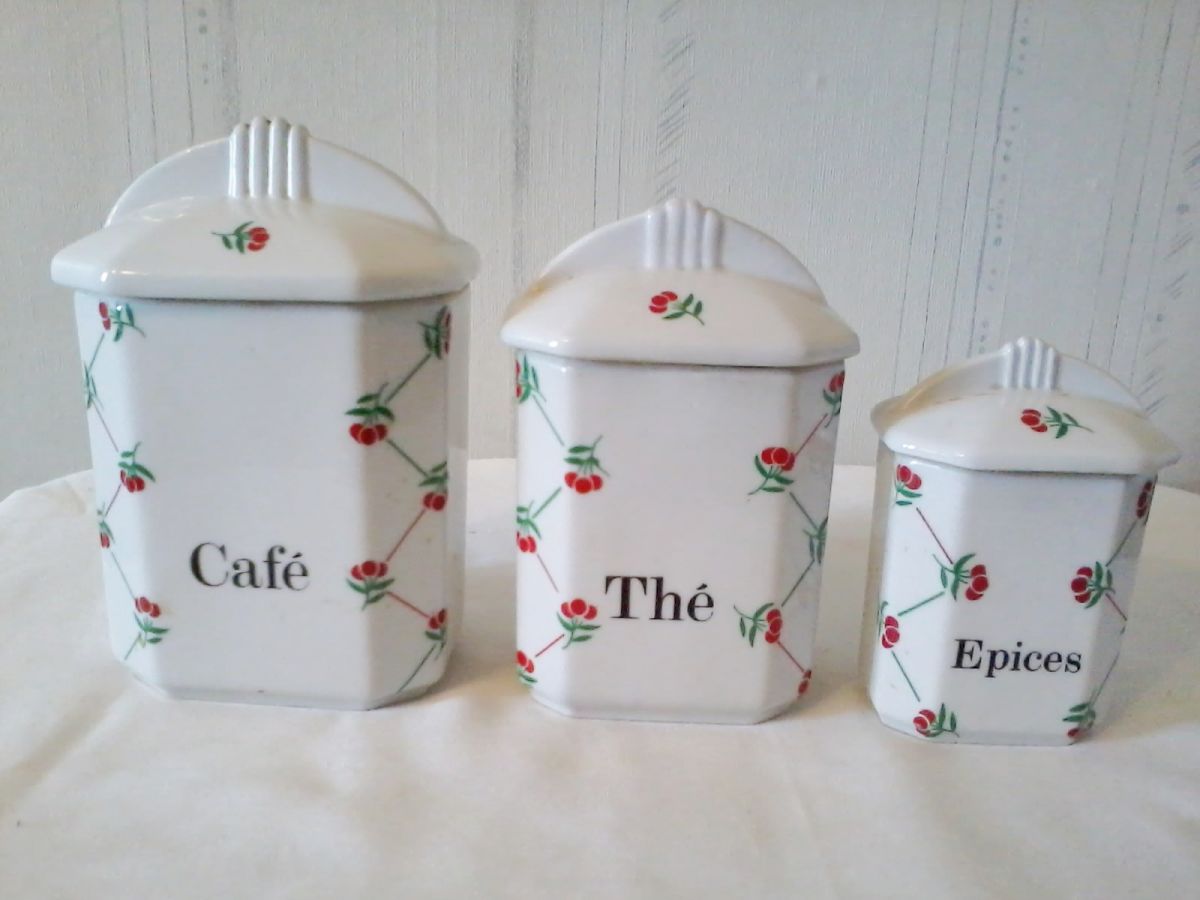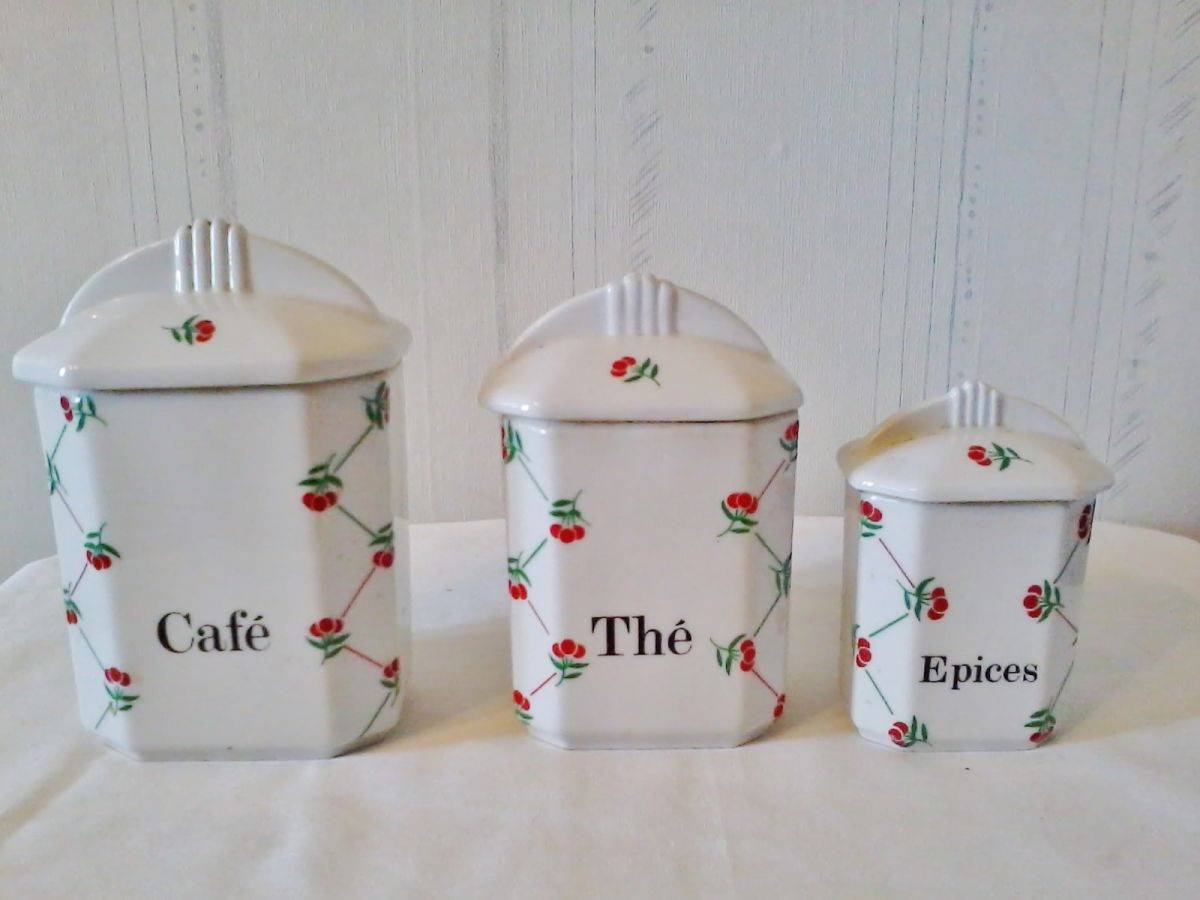 Ensemble de 3 Pots à épices de Cuisine Vintage en céramique avec couvercle.