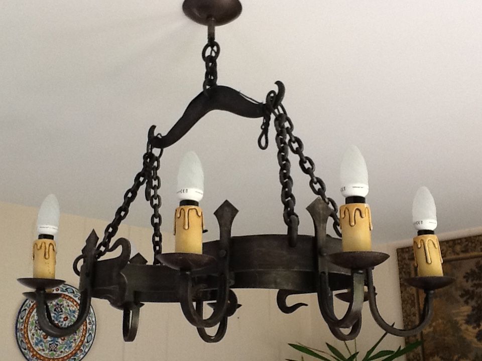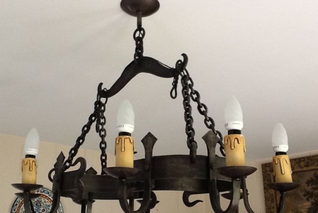 LUSTRE +2 APPLIQUES EN FER FORGE (donc assez lourd)