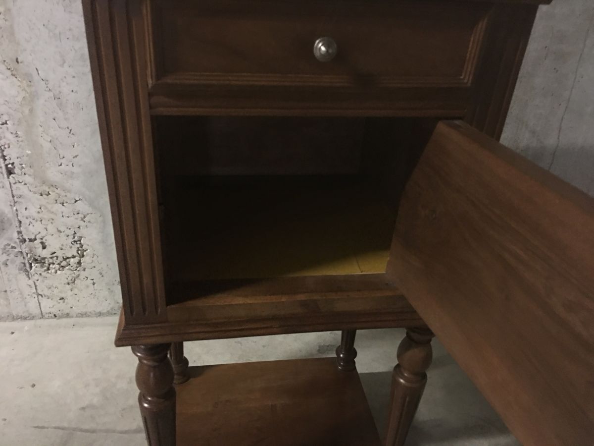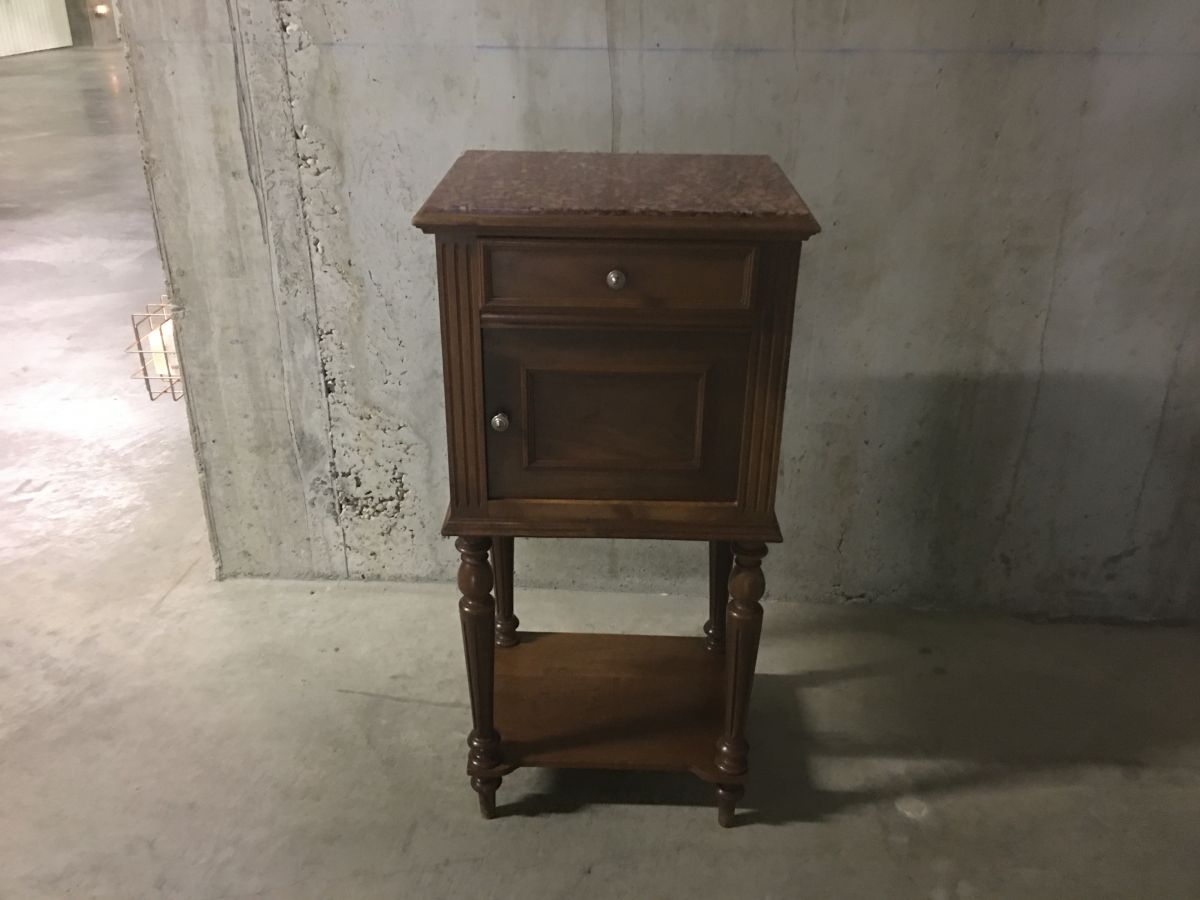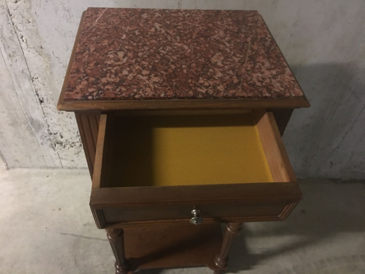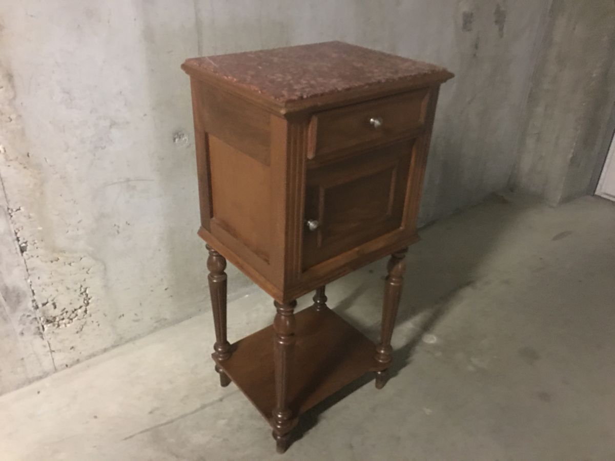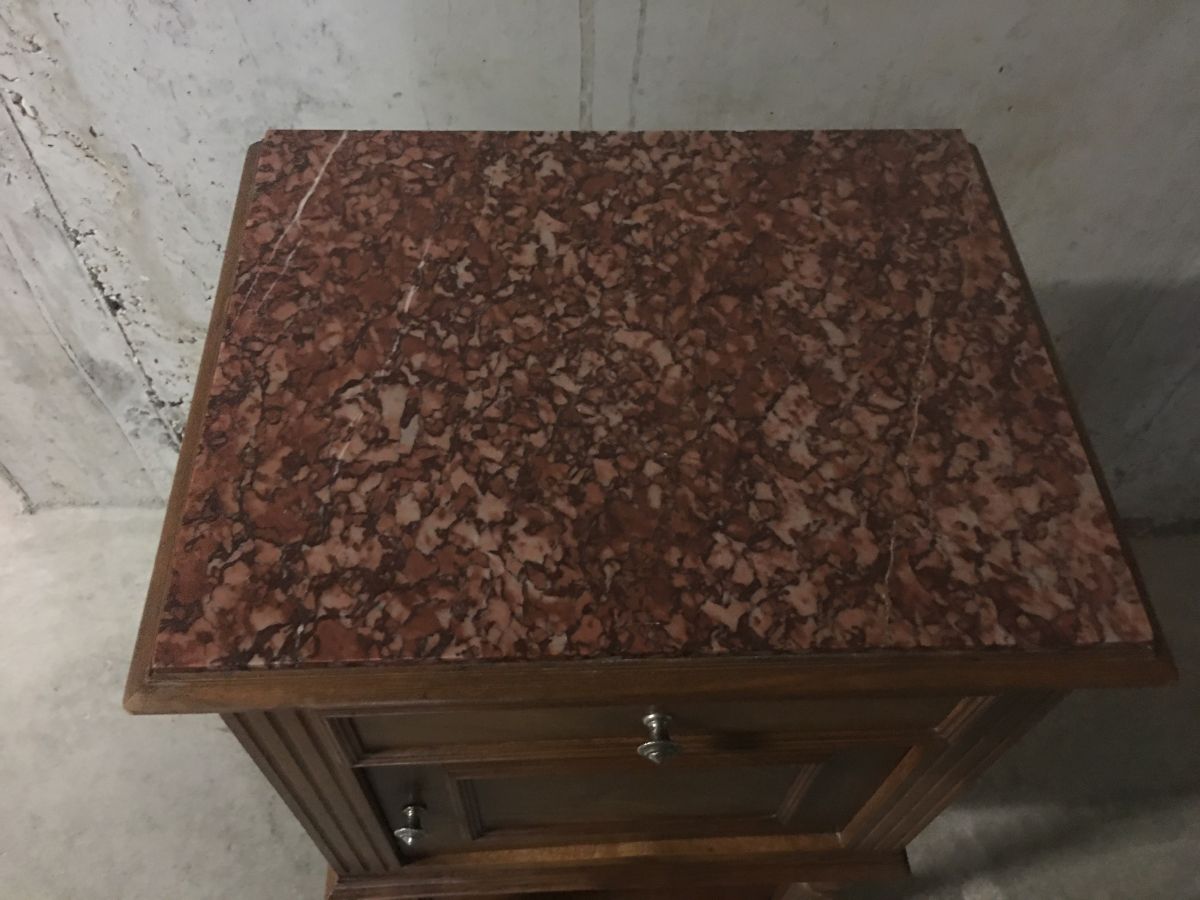 Très beau chevet ancien en bois, plateau en marbre rouge et blanc, 1 tiroir, 1 porte et 1 plateau porte-pot de chambre, idéal en petit meuble d’appoint, dimensions (cm) : L.42xH.90xP.33, bon état.