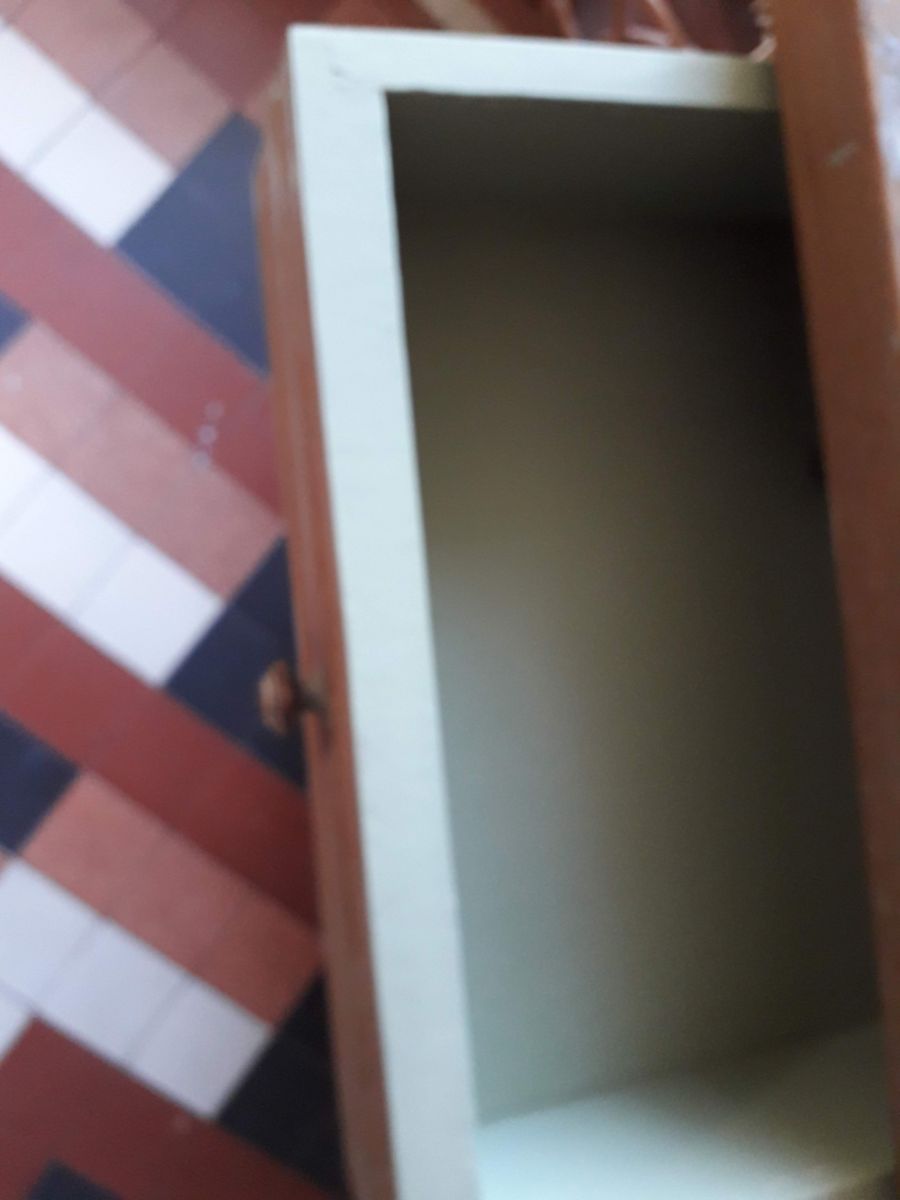 Belle patine, il a été nettoyé et huilé. L intérieur a été repeint avec une peinture à la caseine vert de gris.