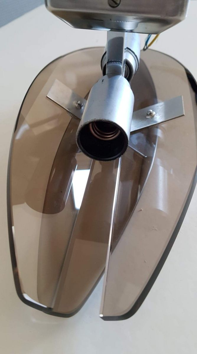 applique verre fumé et métal chromé space age vintage