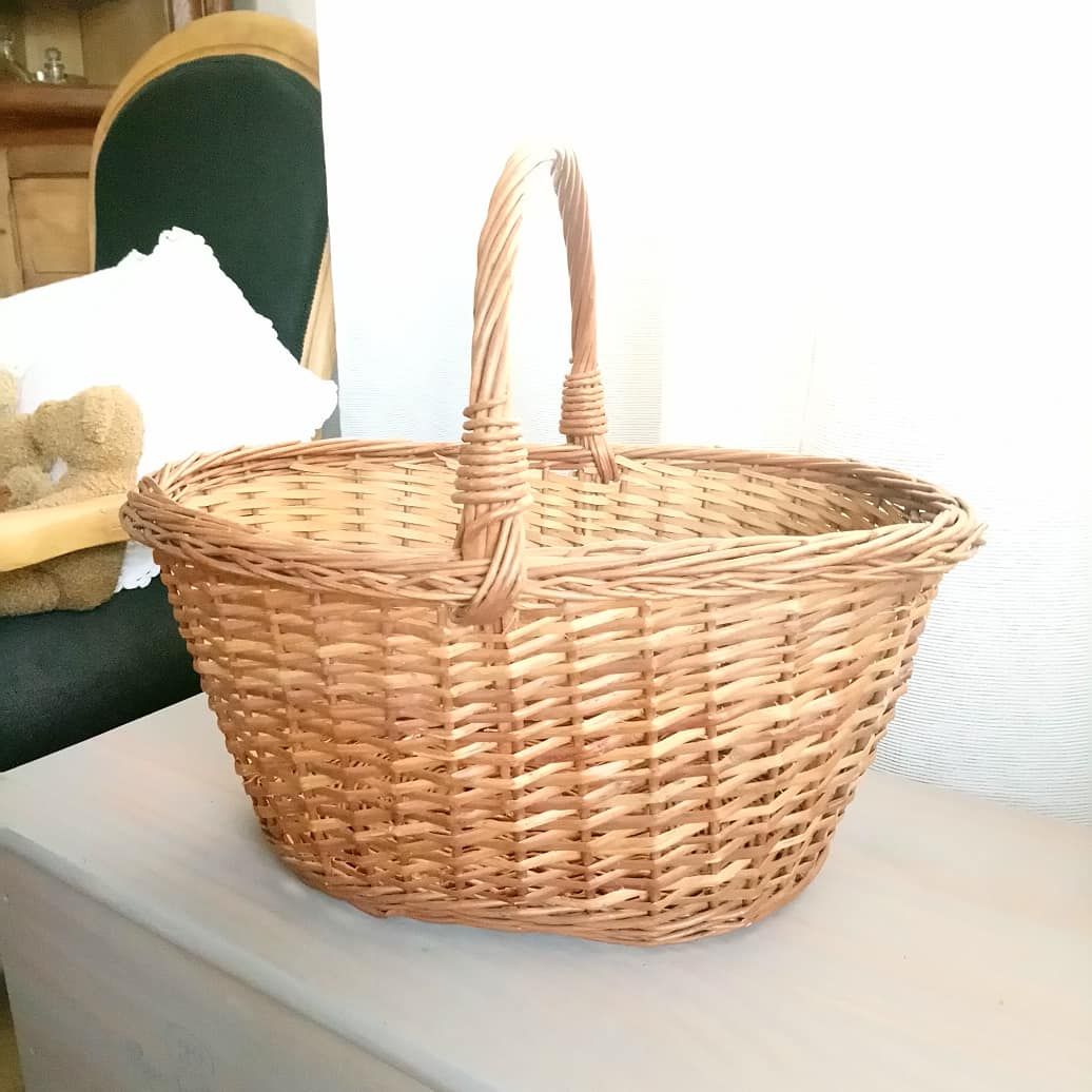 Grand panier en osier, idéal pour les courses ou en déco.... En bon état.