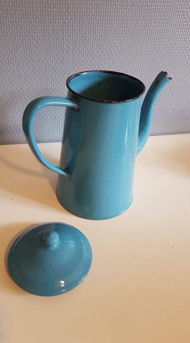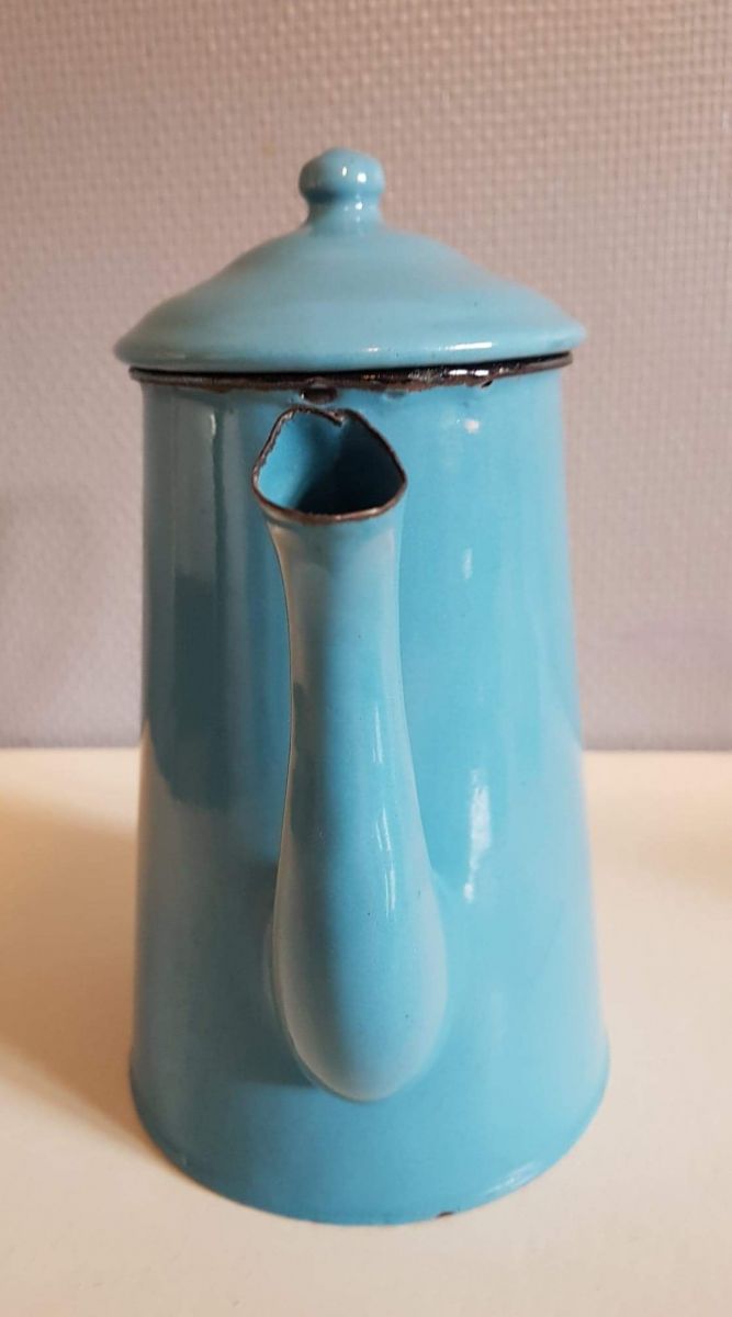 cafetière émaillée bleu clair vintage