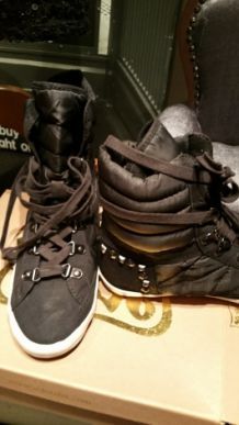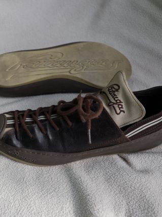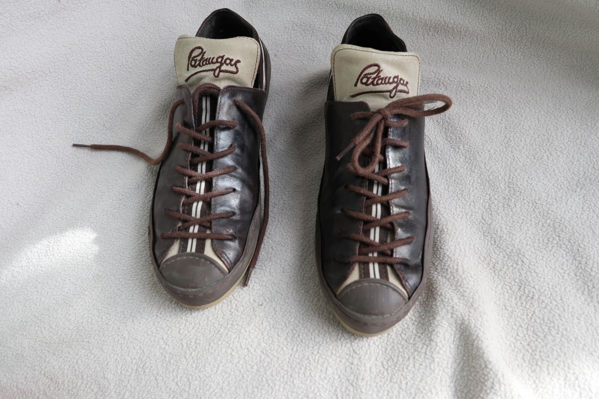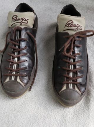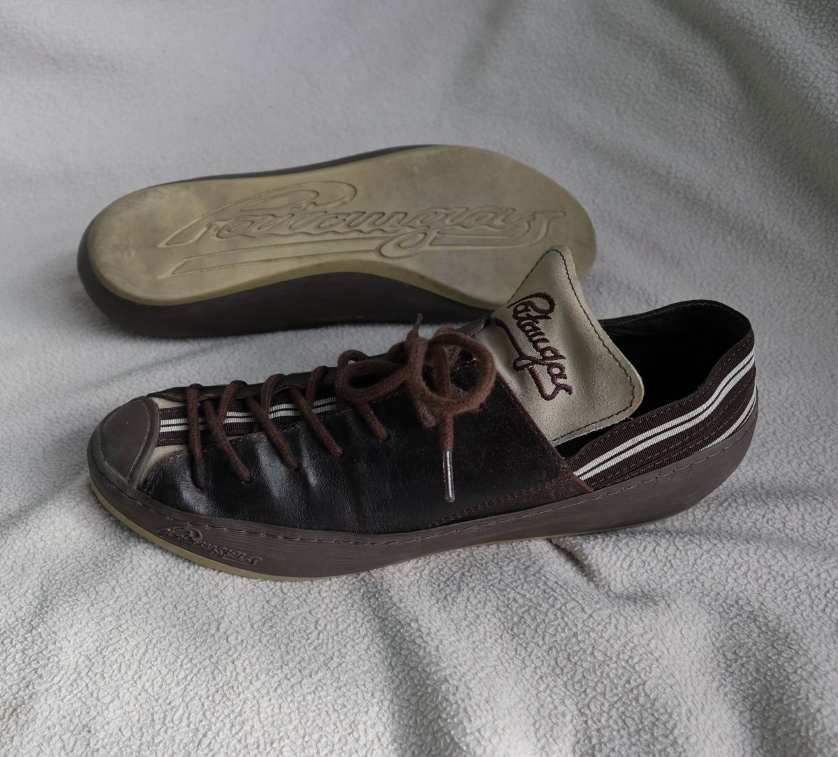 Chaussures très confortables et originales, peu portées; tout cuir sauf quelques détails en tissu sur la languette et au-dessus du talon et sauf semelle extérieure.