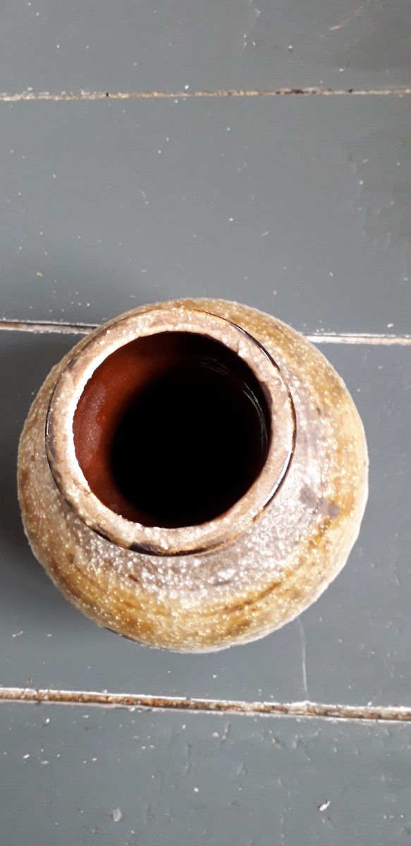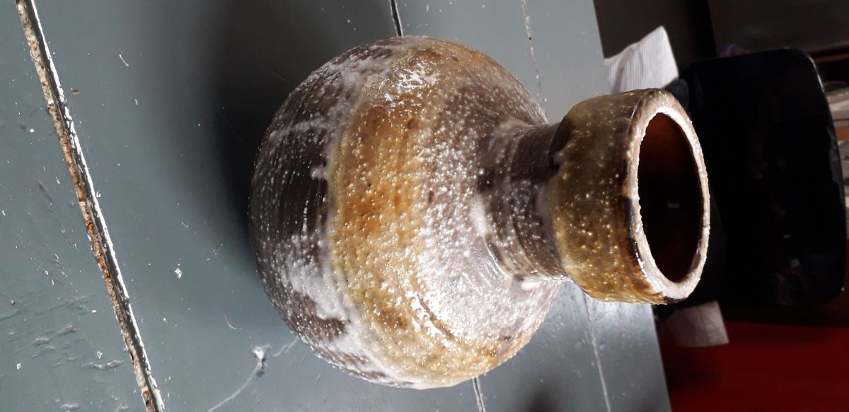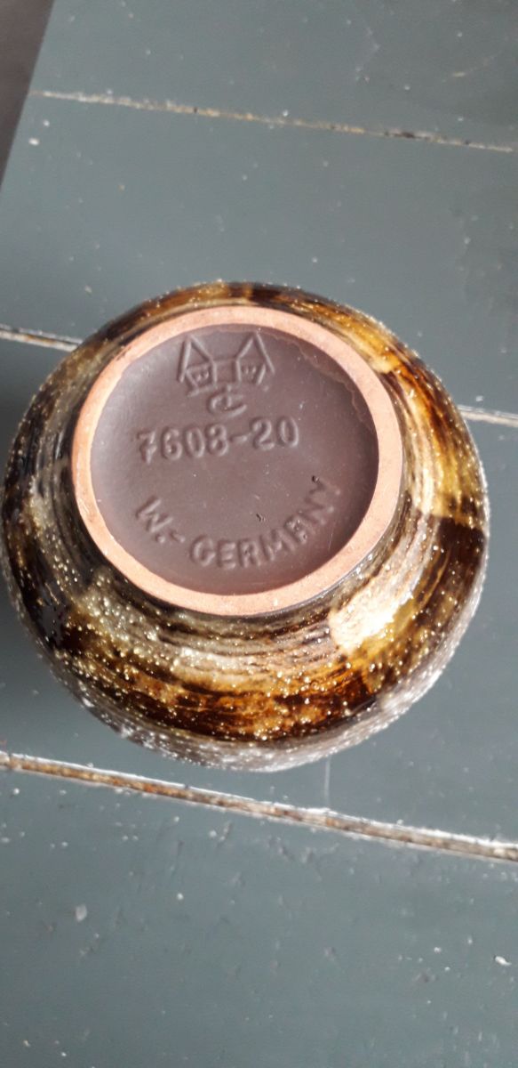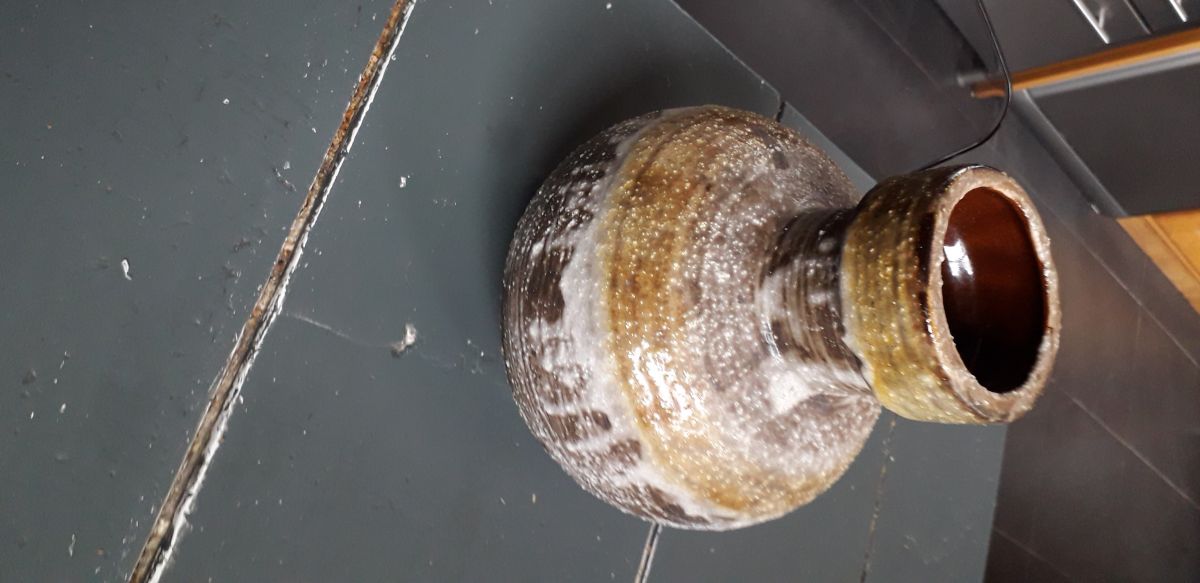 Vase vintage des années 70 en céramique W. Germany avec un aspect brut et des coulures dorées.