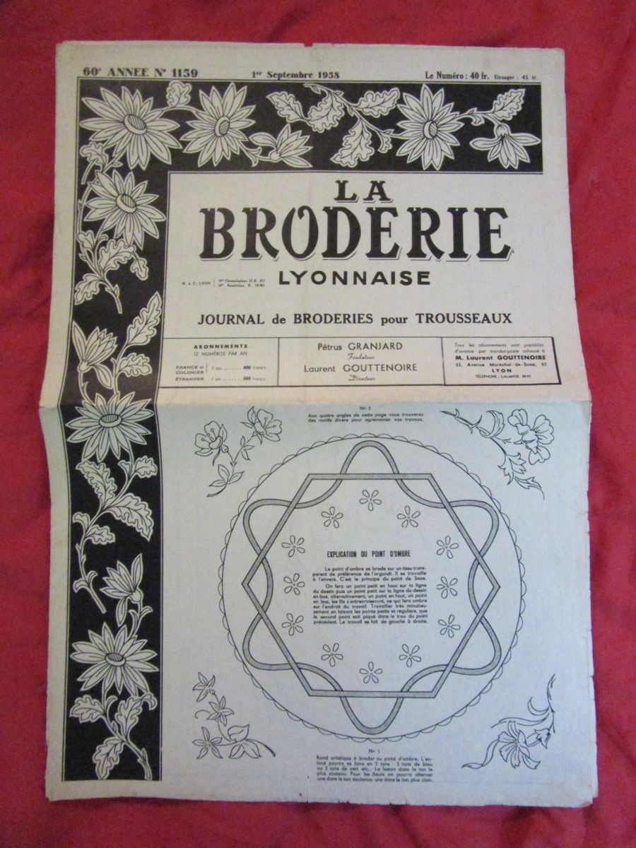 Revue "La Broderie Lyonnaise" n° 1159 du 1er septembre 1958, "Journal de broderies pour trousseaux"