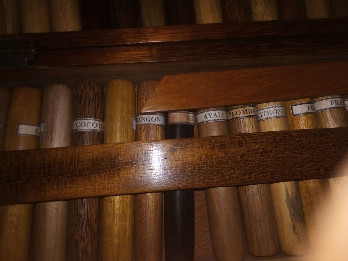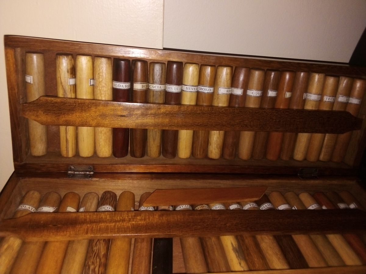 coffret avec tous les essences des bois d"afrique