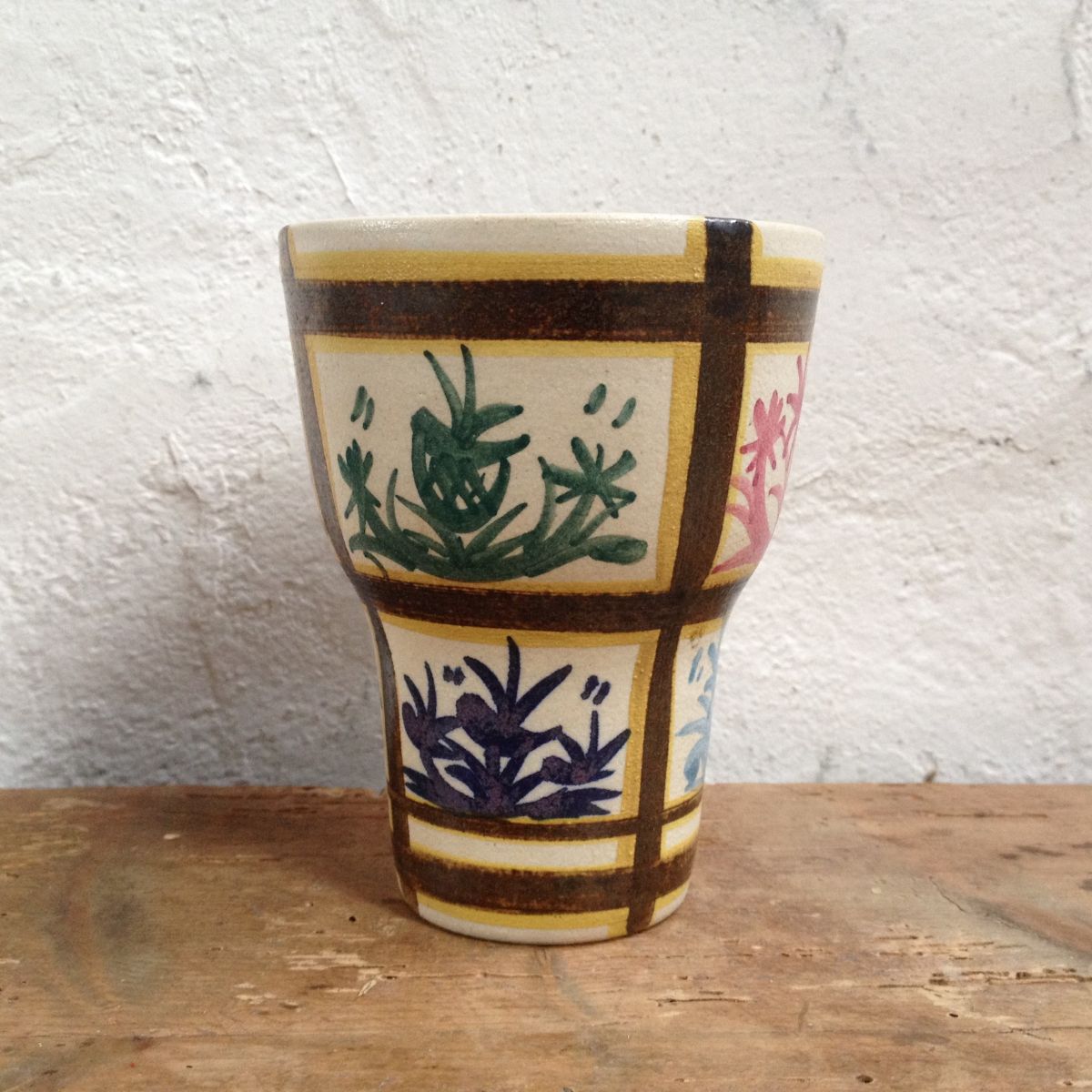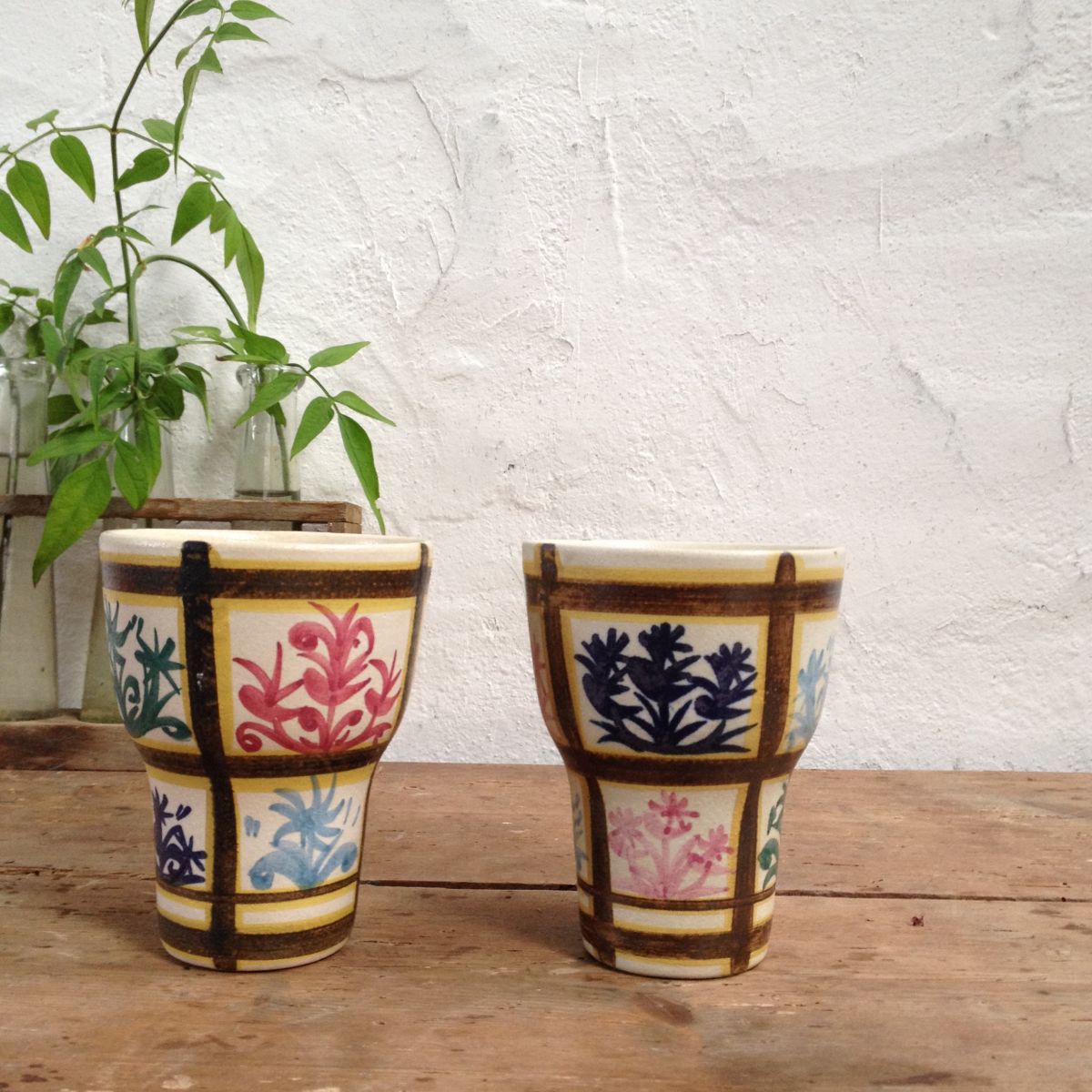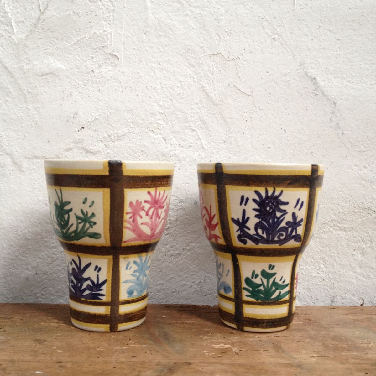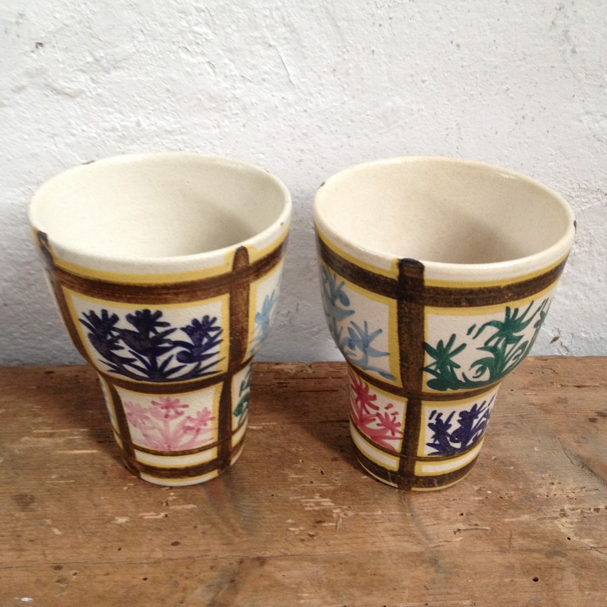 Superbe paire de deux grande tasses gobelets en céramique de Quimper. Un modèle original des années 50/60, typique du style Keraluc.
