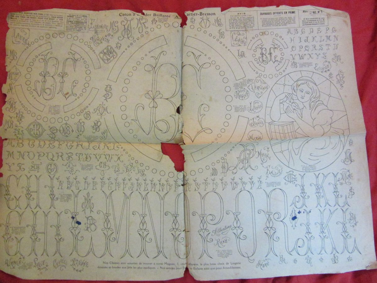 Bords déchirés, taches, papier jauni et déchiré, un trou au centre de la grande planche