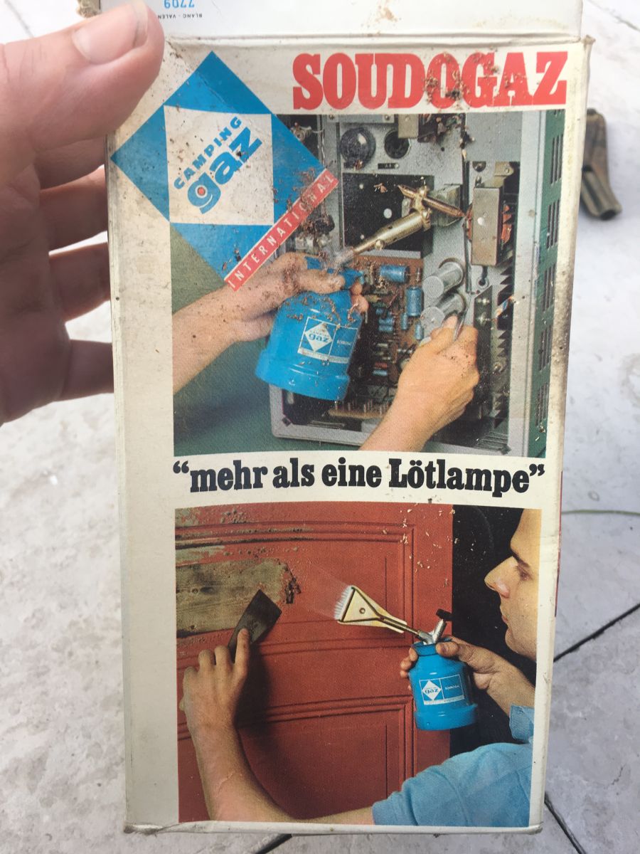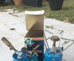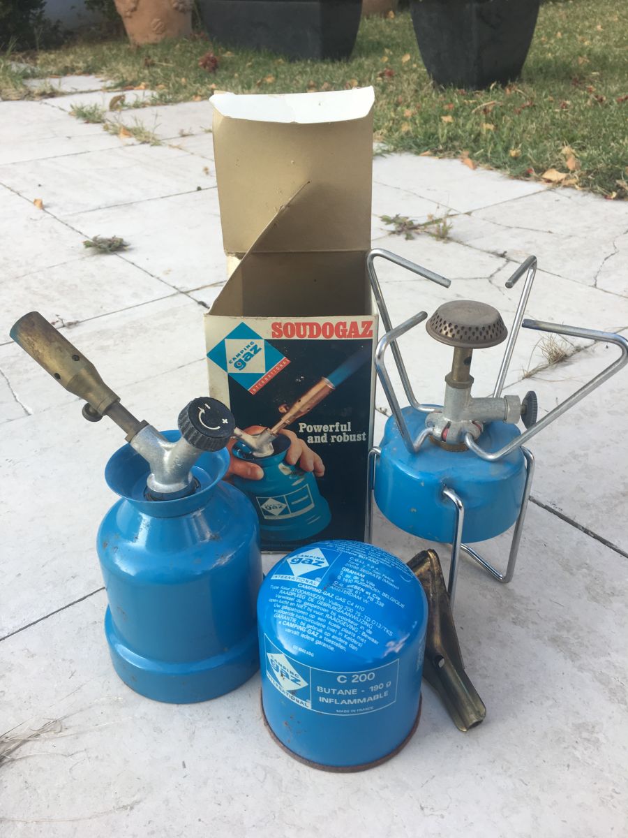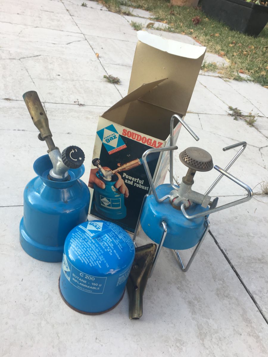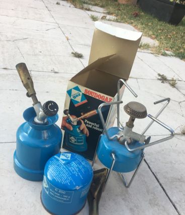 Réchaud de camping vintage dans sa boite d'origine Avec recharges présentes sur La photo.