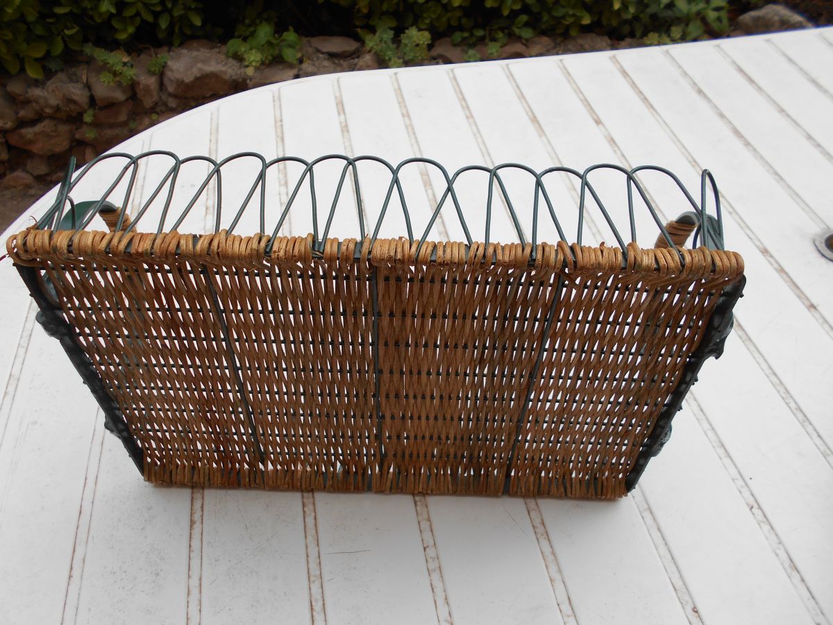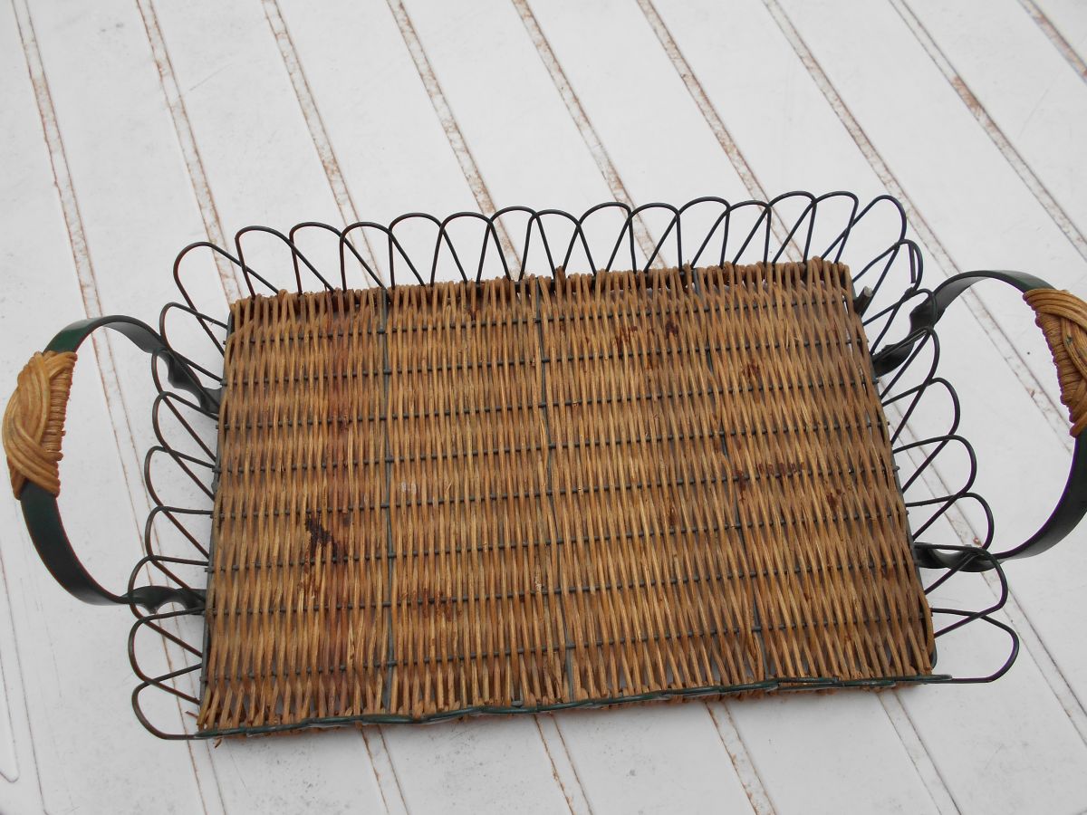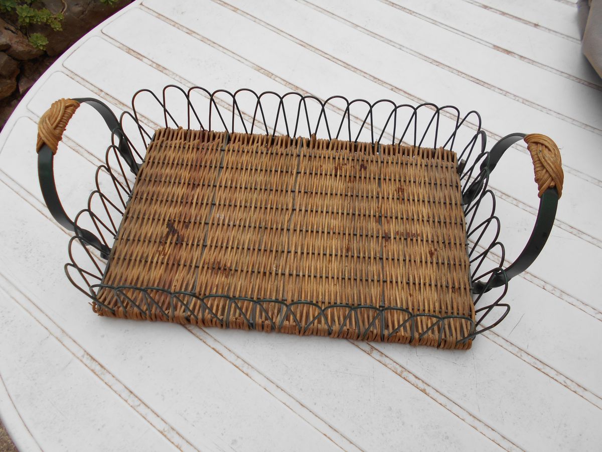 TRES BEAU PLATEAU EN ROTIN OSIER ET METAL VINTAGE TBE