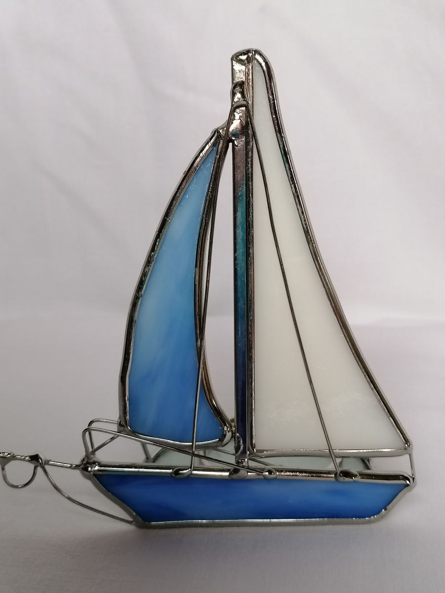 Ravissant bougeoir réalisé à la main en vitrail. Les points de soudures sont à l'étain.