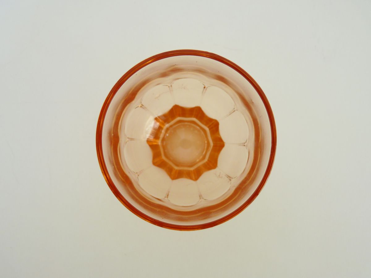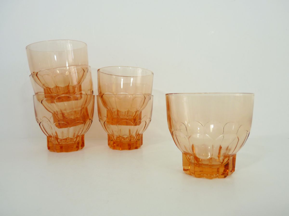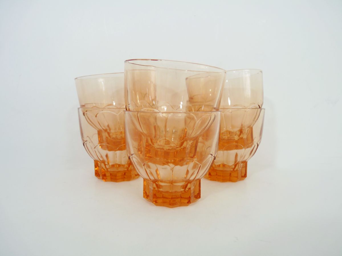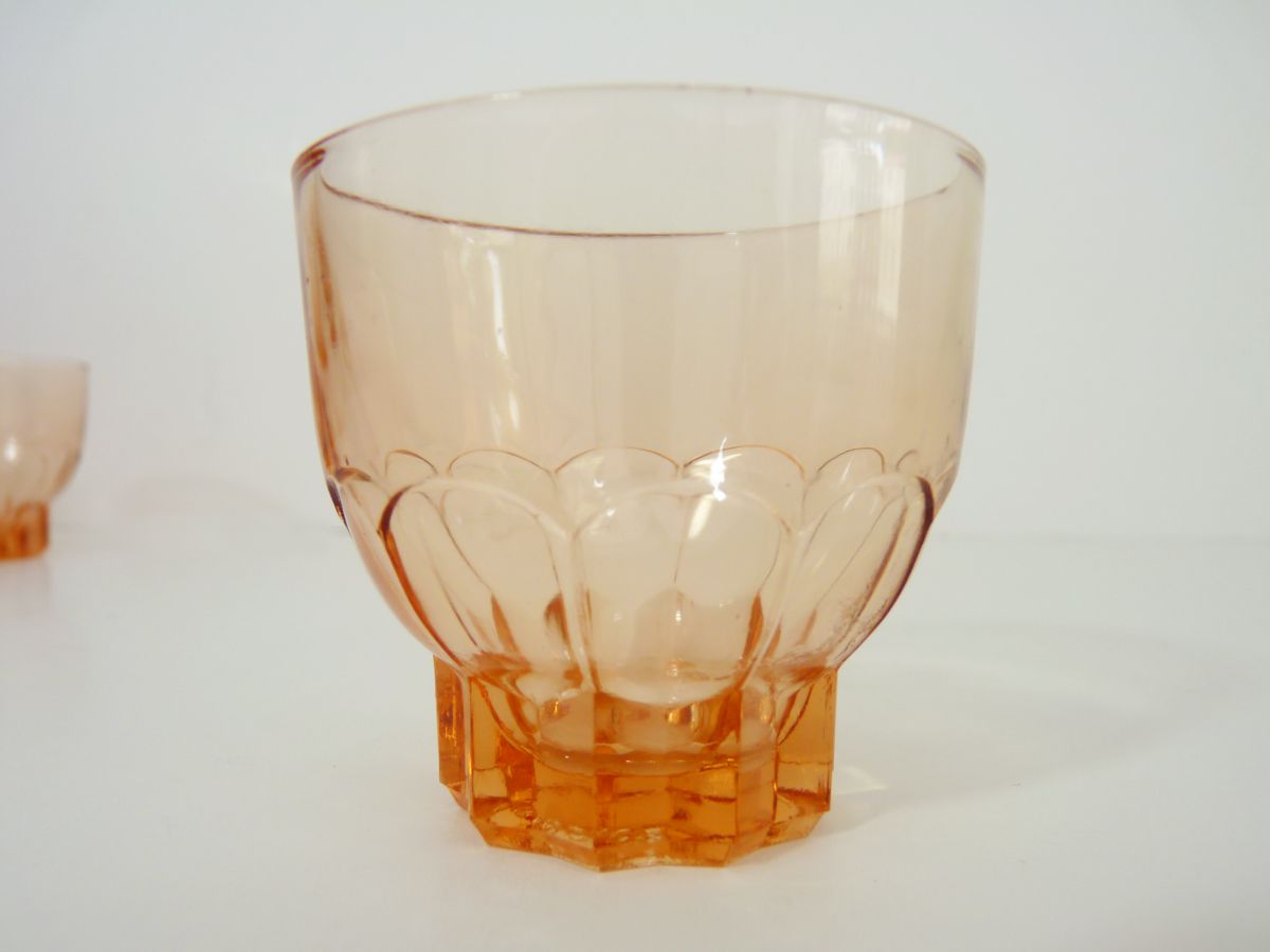 Lot de 6 verres anciens, verre pressé rose, apéritif