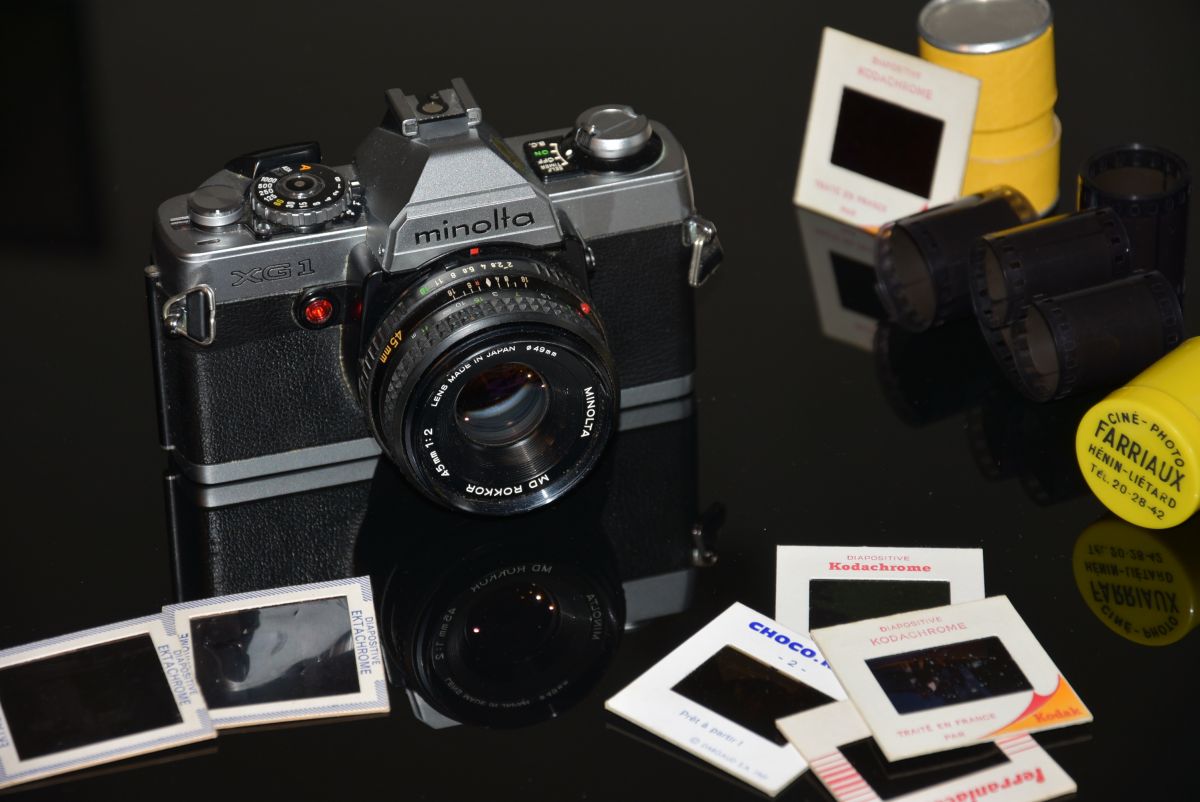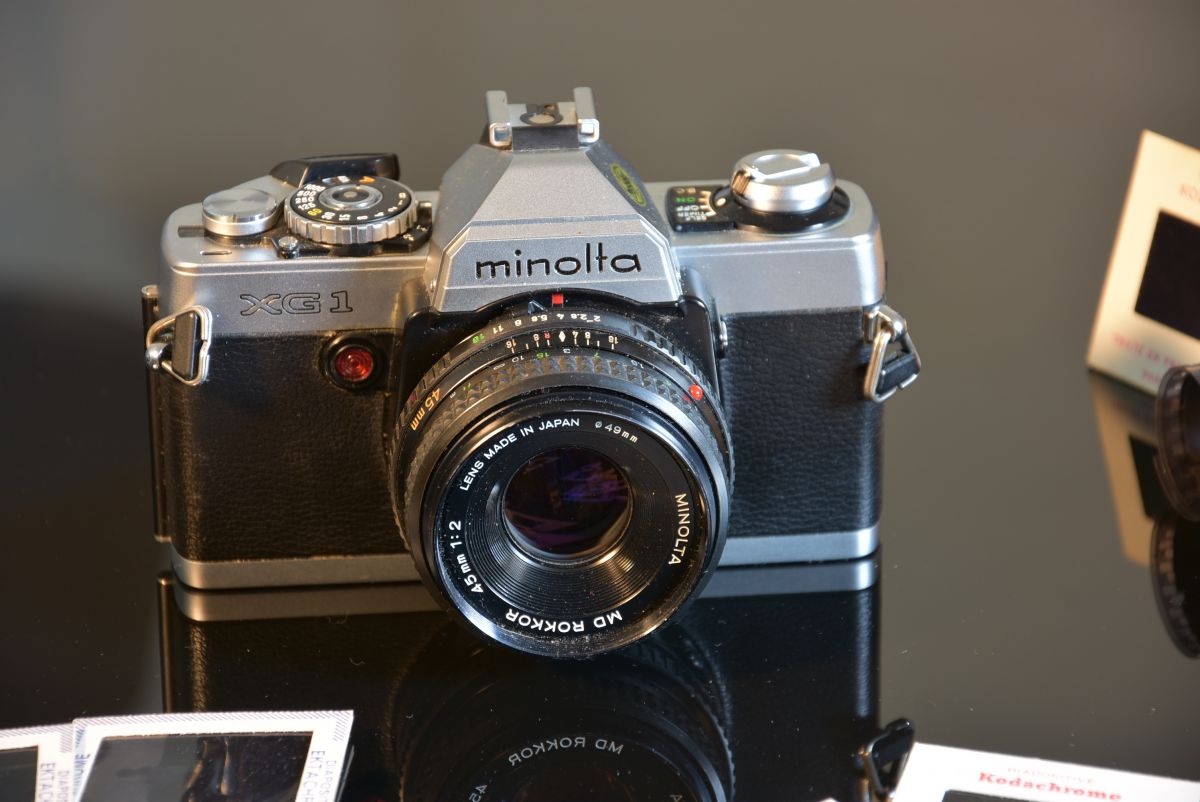 Appareil photo Minolta XG1 sorti en 1978 avant l'apparition du nouveau logo