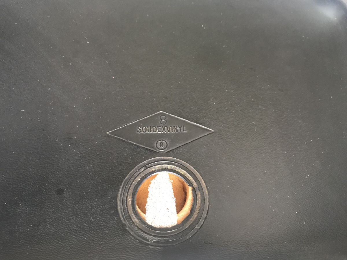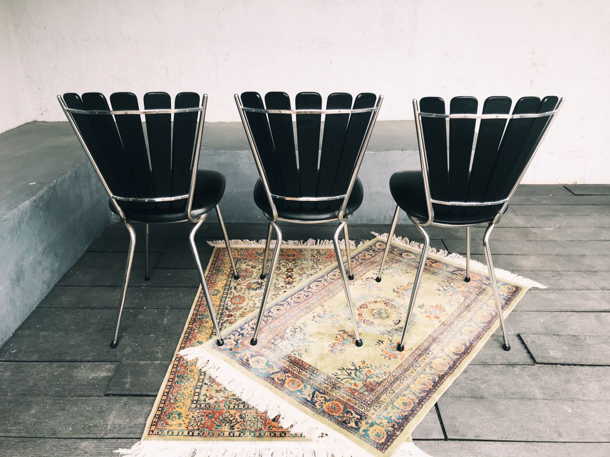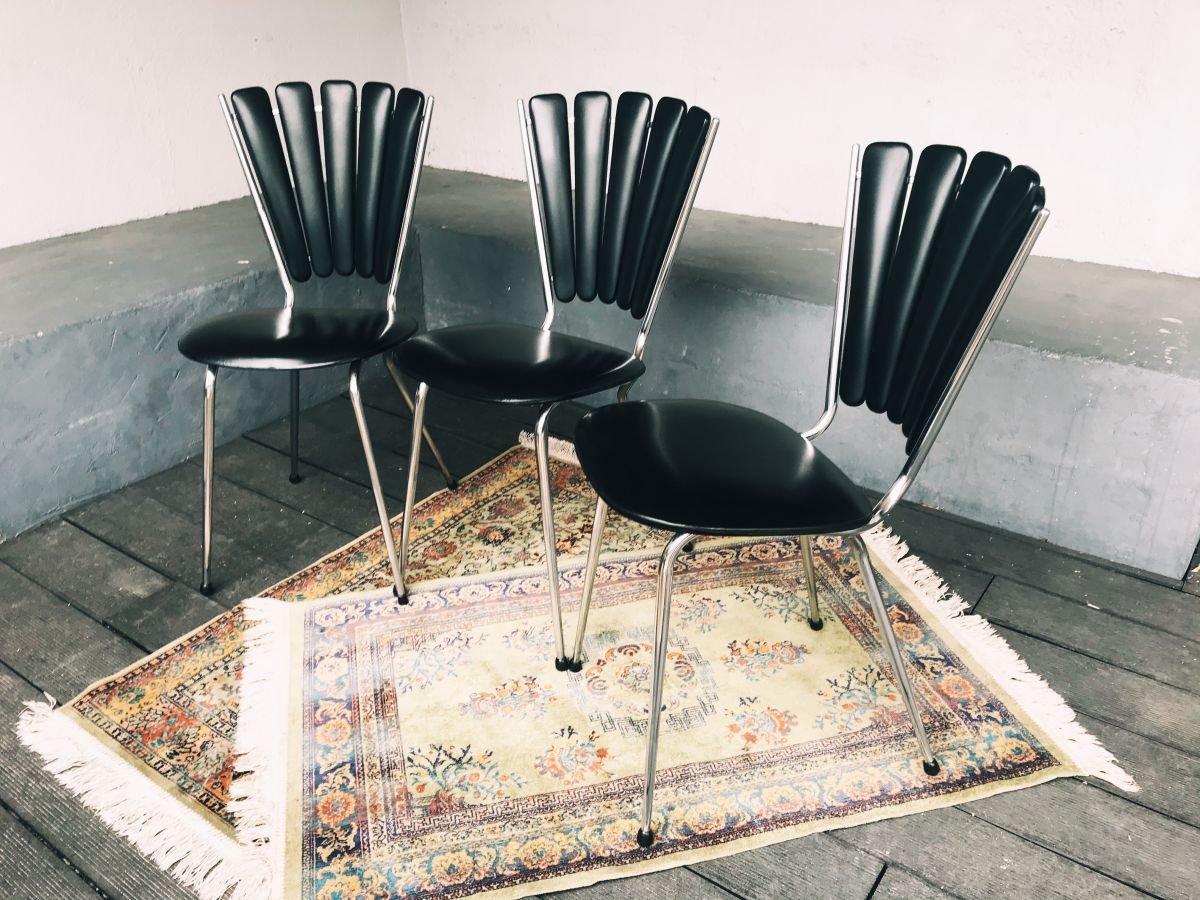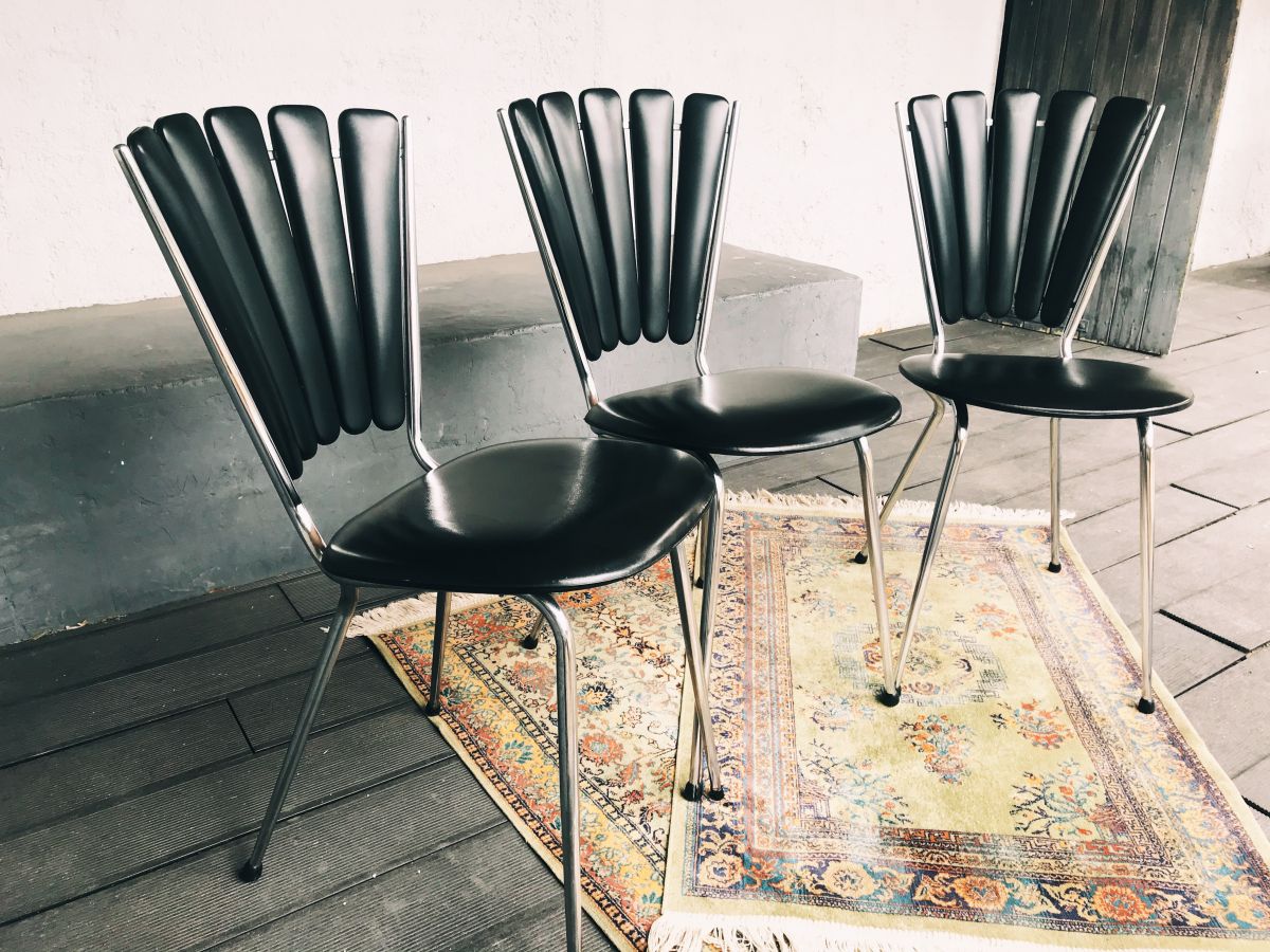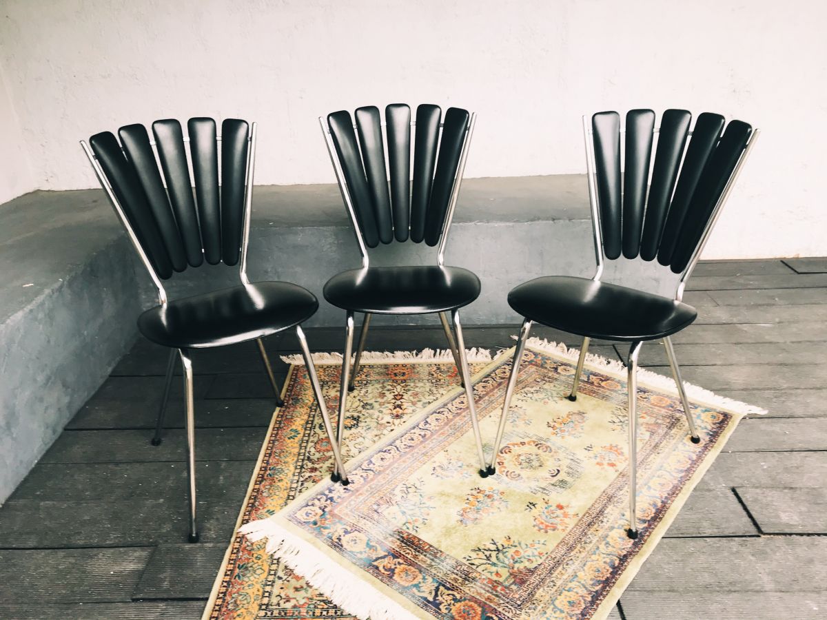 Lot de 3 chaises vintage de la marque Soudexvinyl des années 60-70, en vinyle noir, en bon état.