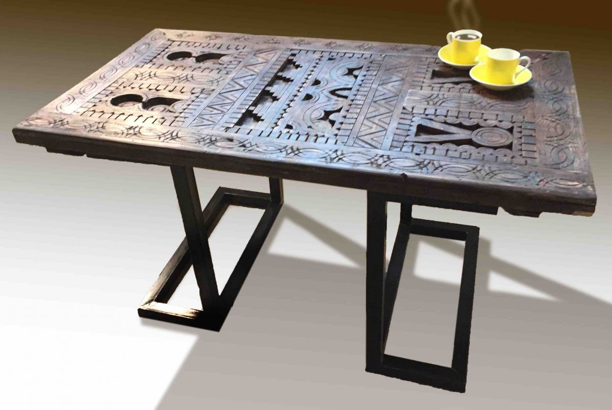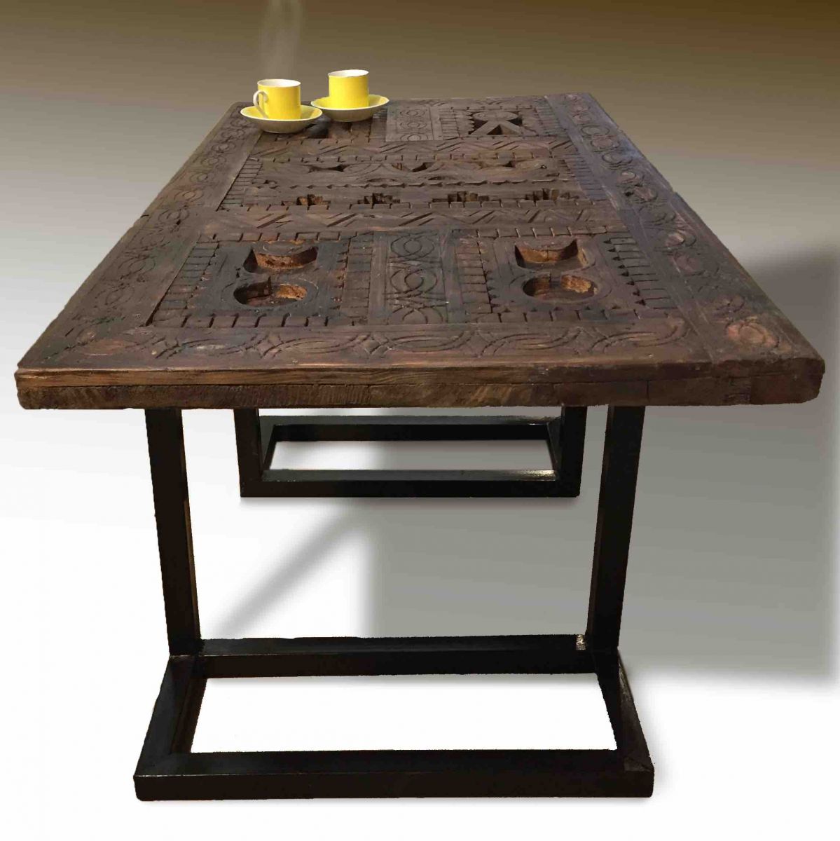Conçue à partir d’une porte berbère ancienne, cette table basse massive et équilibrée est de fait unique et très originale.