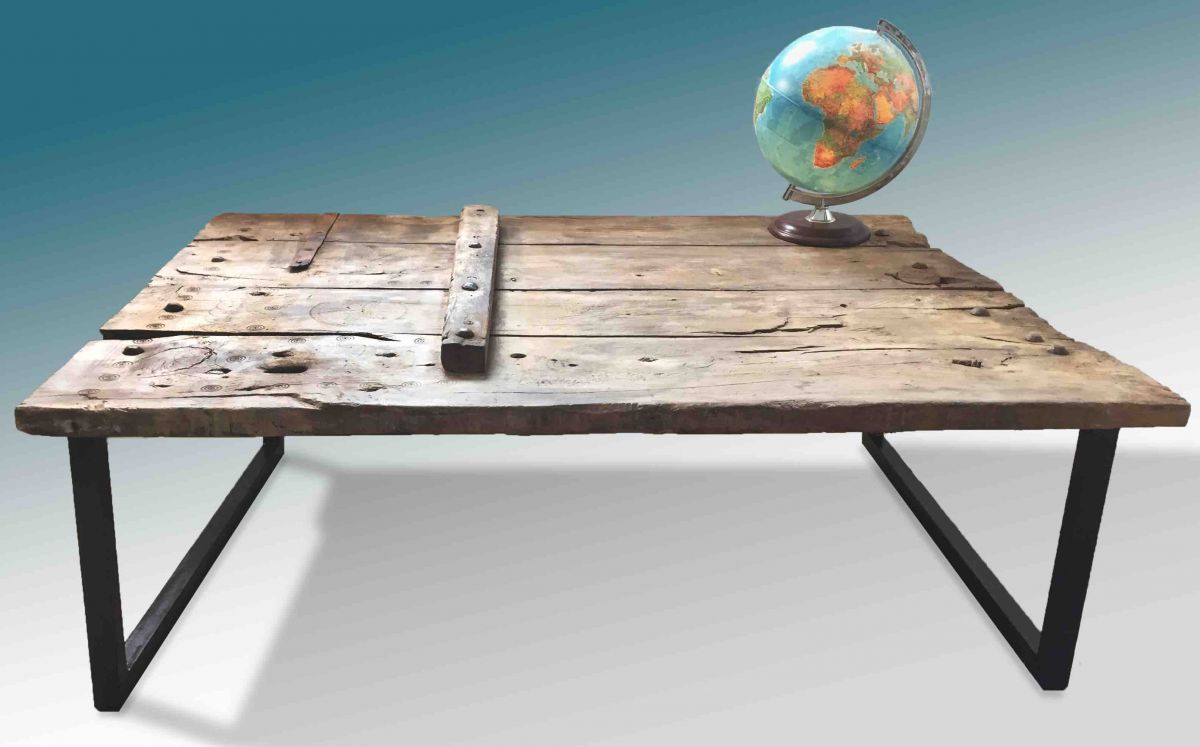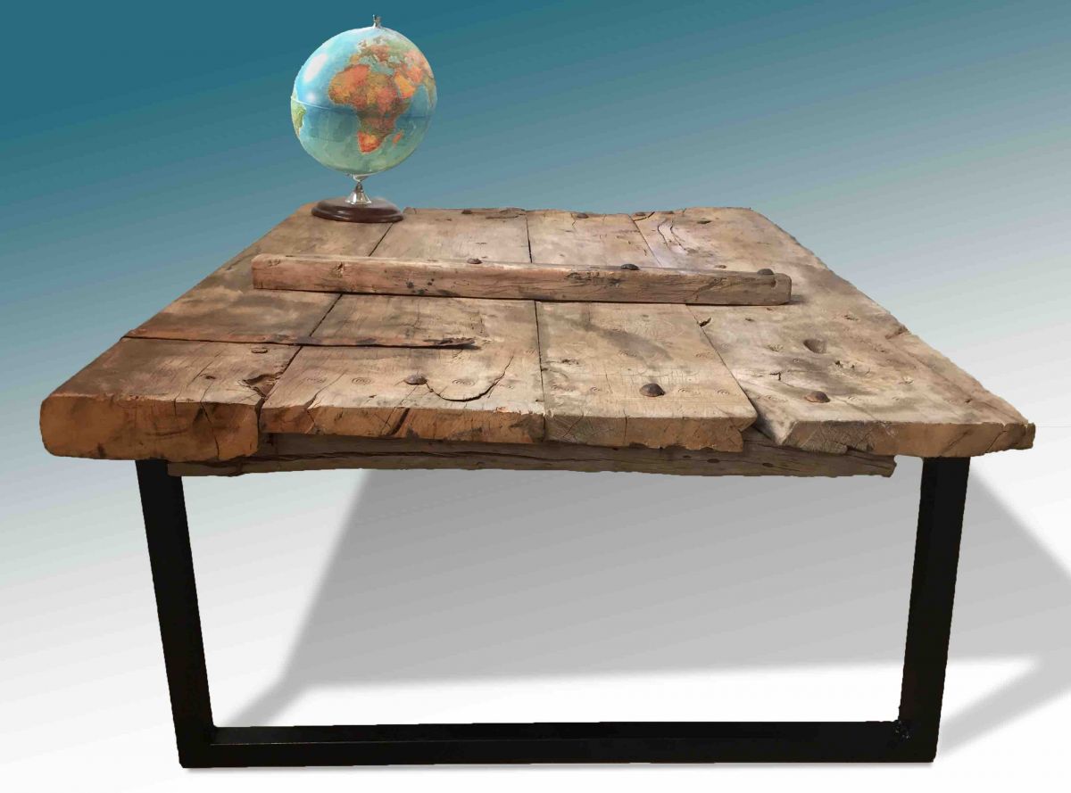Conçue à partir d’une porte berbère ancienne, cette table basse massive et équilibrée est de fait unique et très originale.