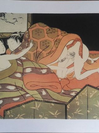 Curiosa - Belle gravure érotique japonaise 43 x 31 cm, non signée, sur papier vergé de Hollande Van Gelder Zonen