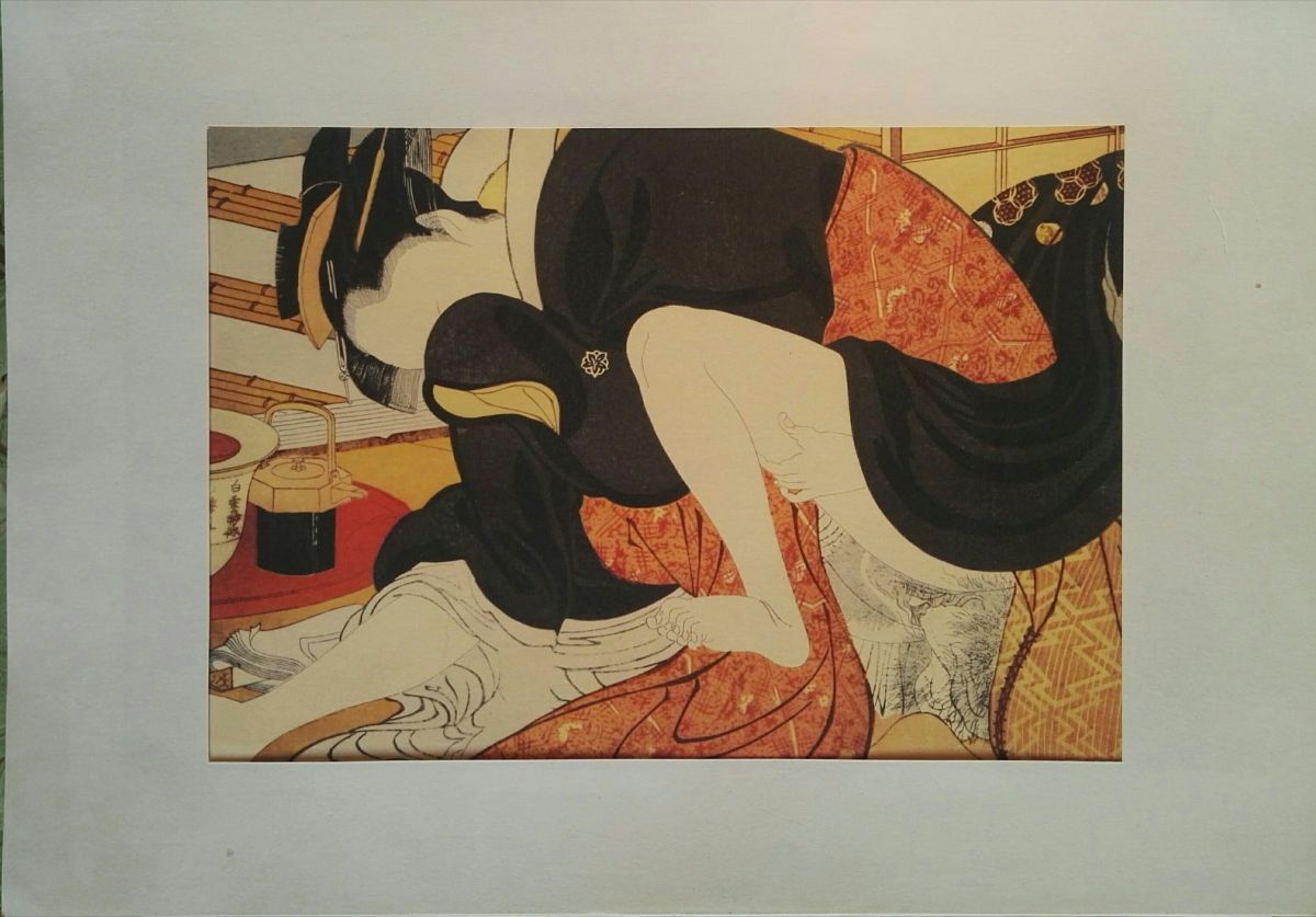 Beautiful Japanese erotic engraving 43 x 31 cm, unsigned, printed on "Van Gelder Zonen" laid paper