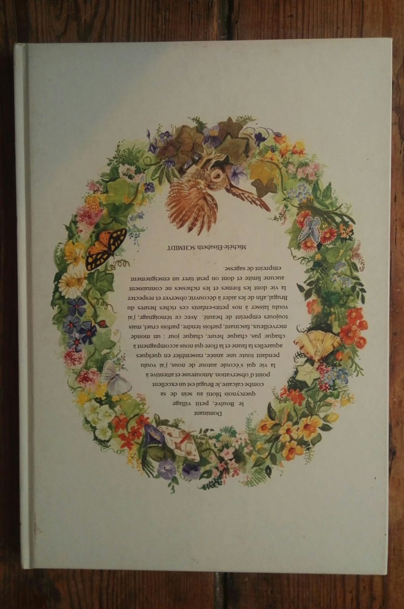 Témoignage d’une grand-mère à ses petits enfants, cet ouvrage est dédiée aux merveilles de notre environnement faunistique et floristique. Le Brugal, lieu-dit dominant le petit village du Boulvé, est un excellent point d’observation. Amoureuse et attentive à la vie qui s’écoule, l’auteur, Michèle-Elisabeth Schmidt a rassemblé durant une année en de très nombreuses aquarelles la faune et la flore, notre environnement du quotidien. Un monde merveilleux, fascinant, parfois tendre, parfois cruel, mais toujours empreint de beauté.