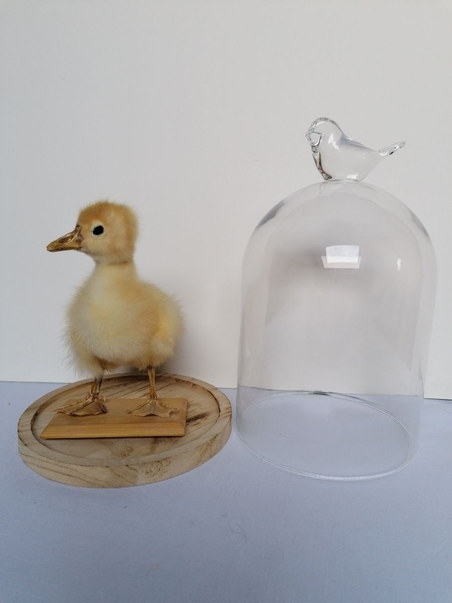Taxidermie d'un petit caneton protégé sous une cloche, il saura compléter votre cabinet de curiosité d'un peu de douceur. Années 70