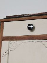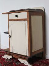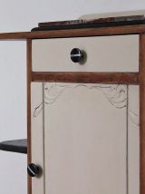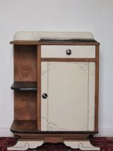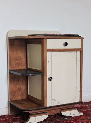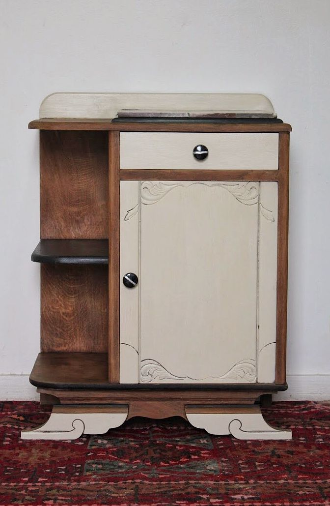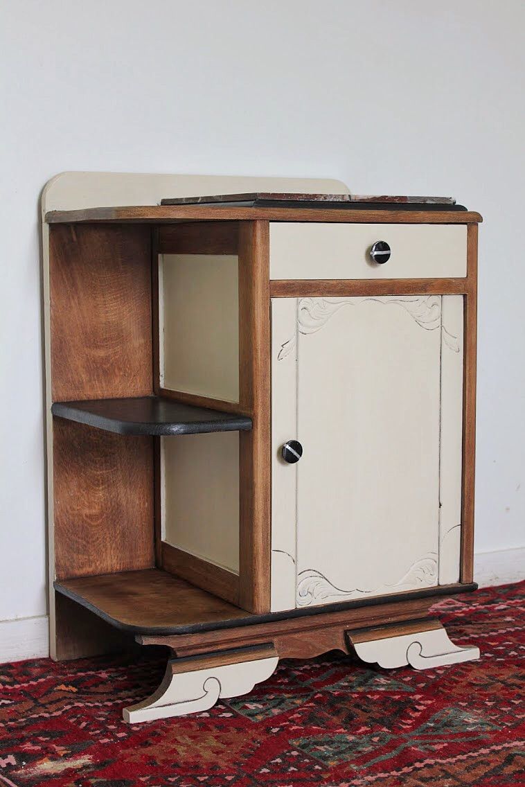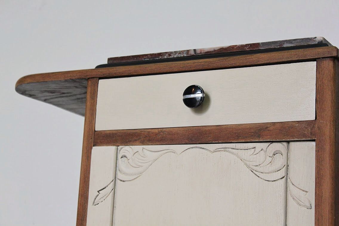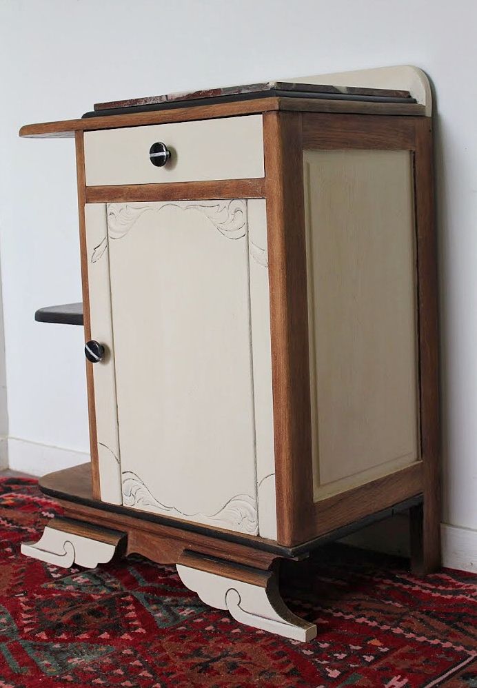 Ce chevet des années 30 est parfait pour une chambre de goût ou un bout de canapé stylé.. Ce meuble a été entièrement poncé puis peint en blanc cassé mat et noir. Le marbre du dessus est intact comme le reste du meuble!