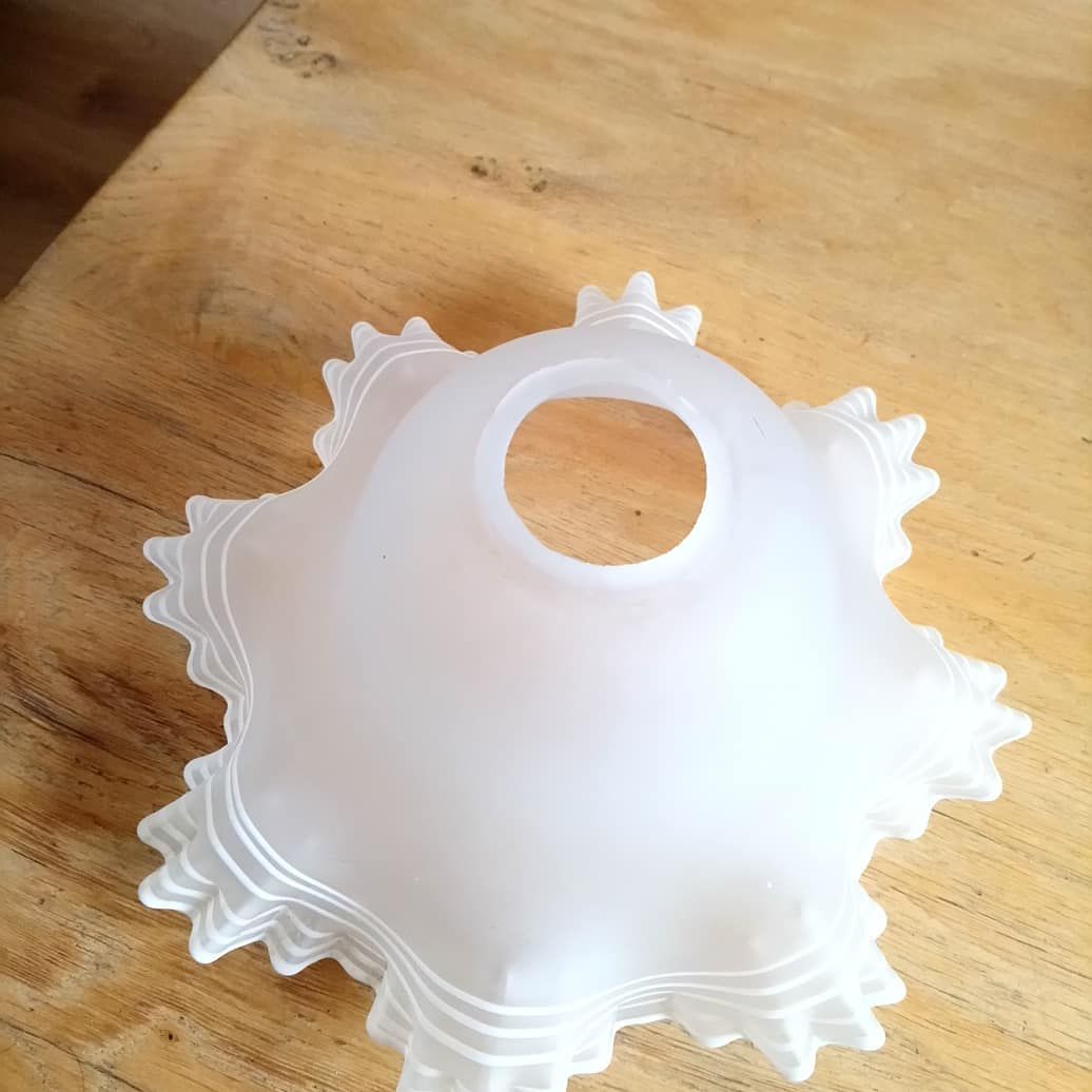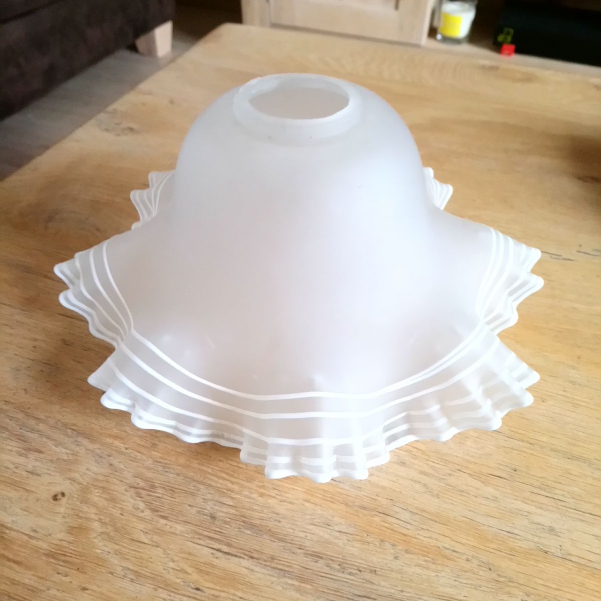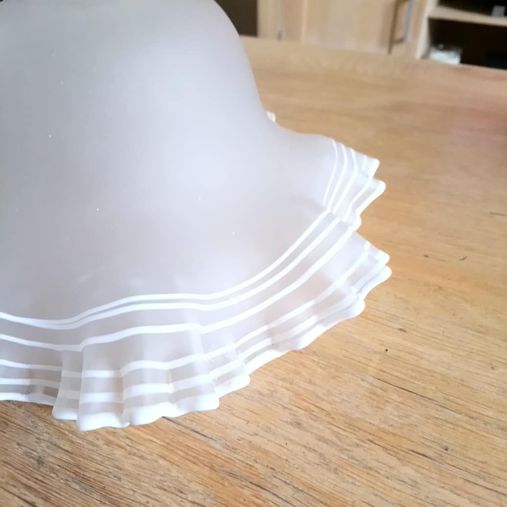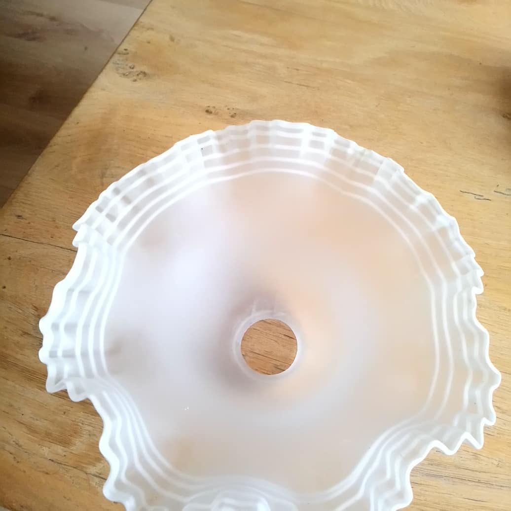 Jolie suspension en opaline plissée à bordure blanche. En très bon état