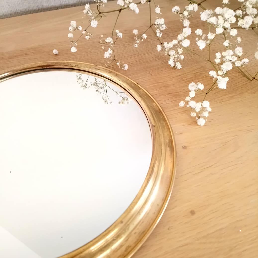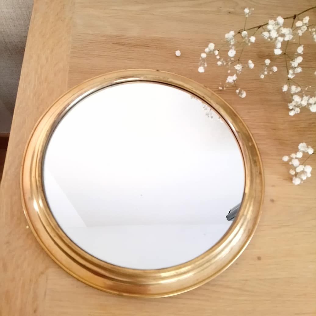 Joli plateau pouvant servir de miroir mural a été nettoyé pour lui redonner sa brillance. Légères rayures sur le miroir.