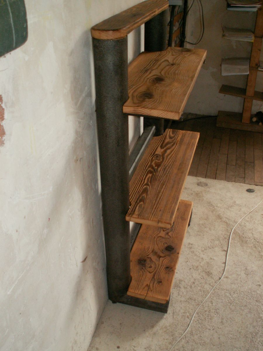 Console sur base d'ancienne étagère d'une usine de céramique.