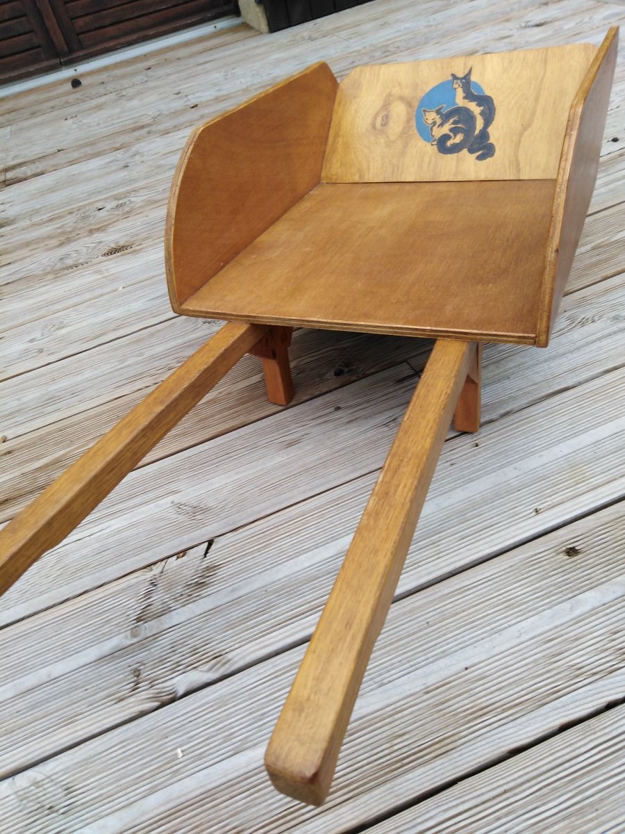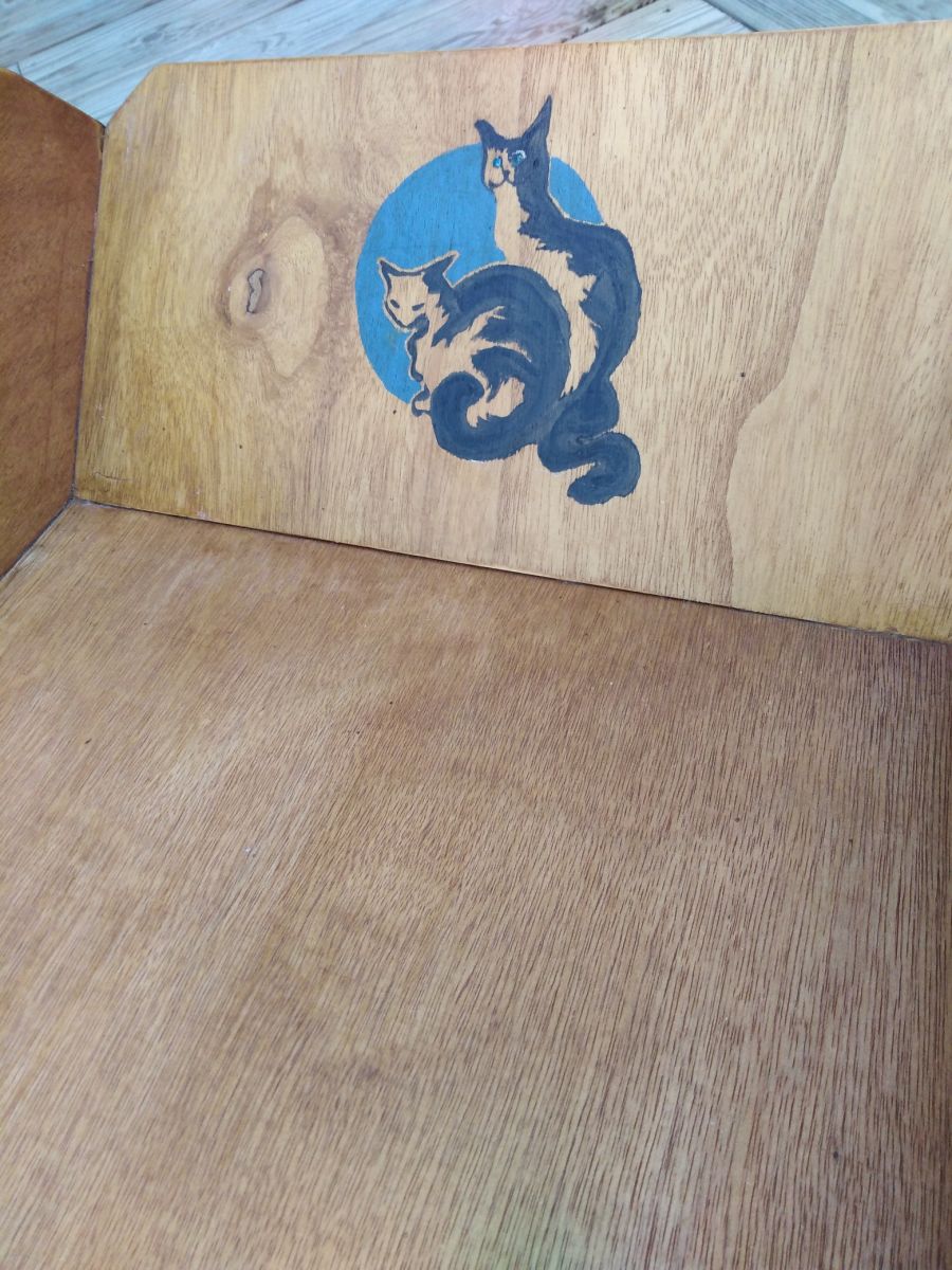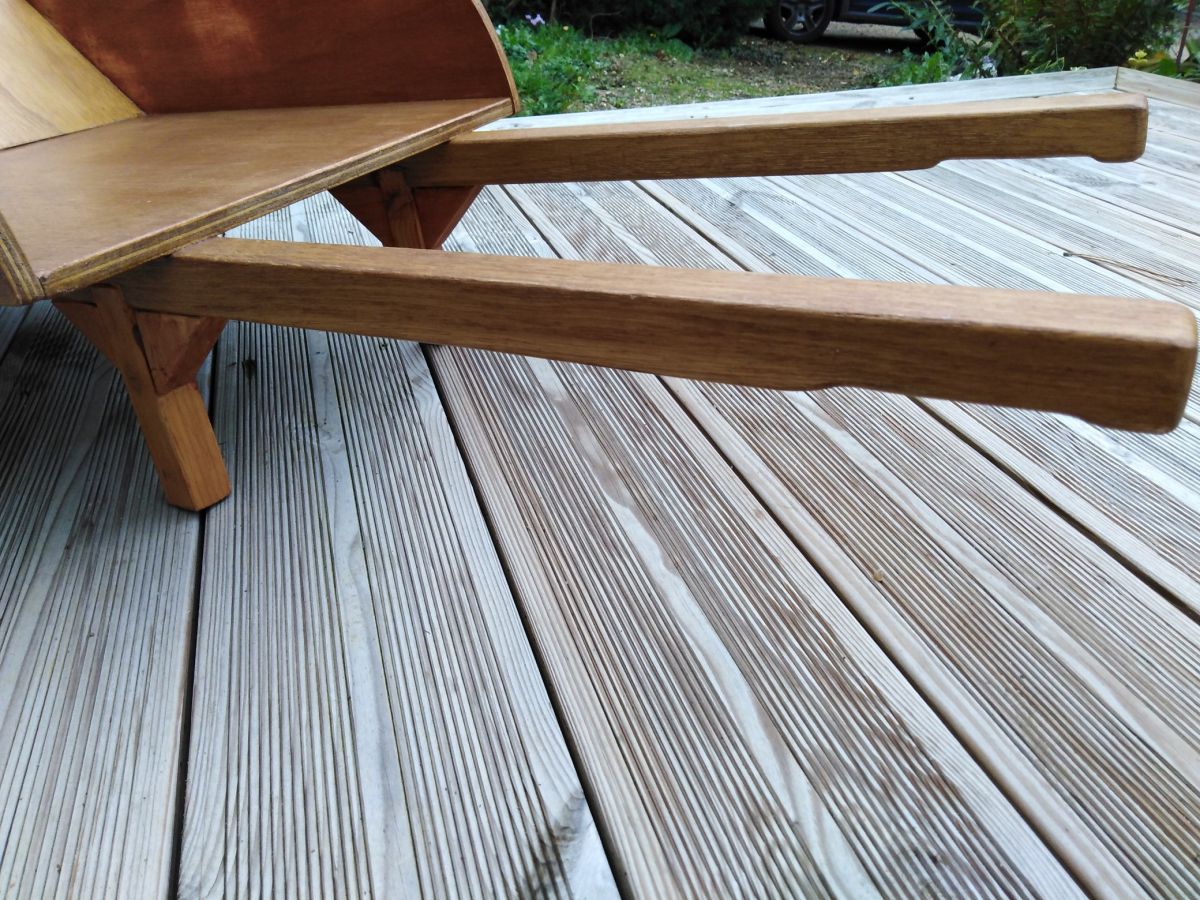 fait main, chevilles en bois, et vernis intérieur.