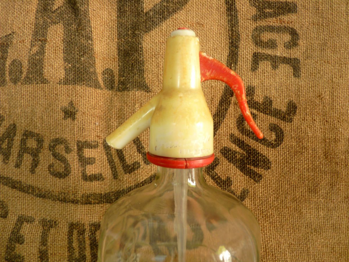 Siphon en verre épais de la marque espagnole " Espumosos March campredo ". Le siphon présente des traces du temps mais fonctionne parfaitement.