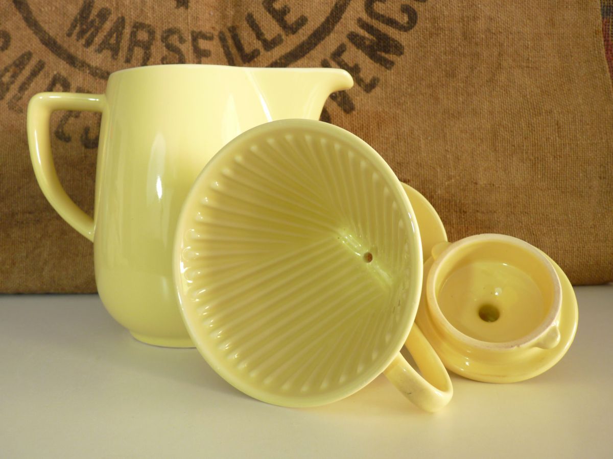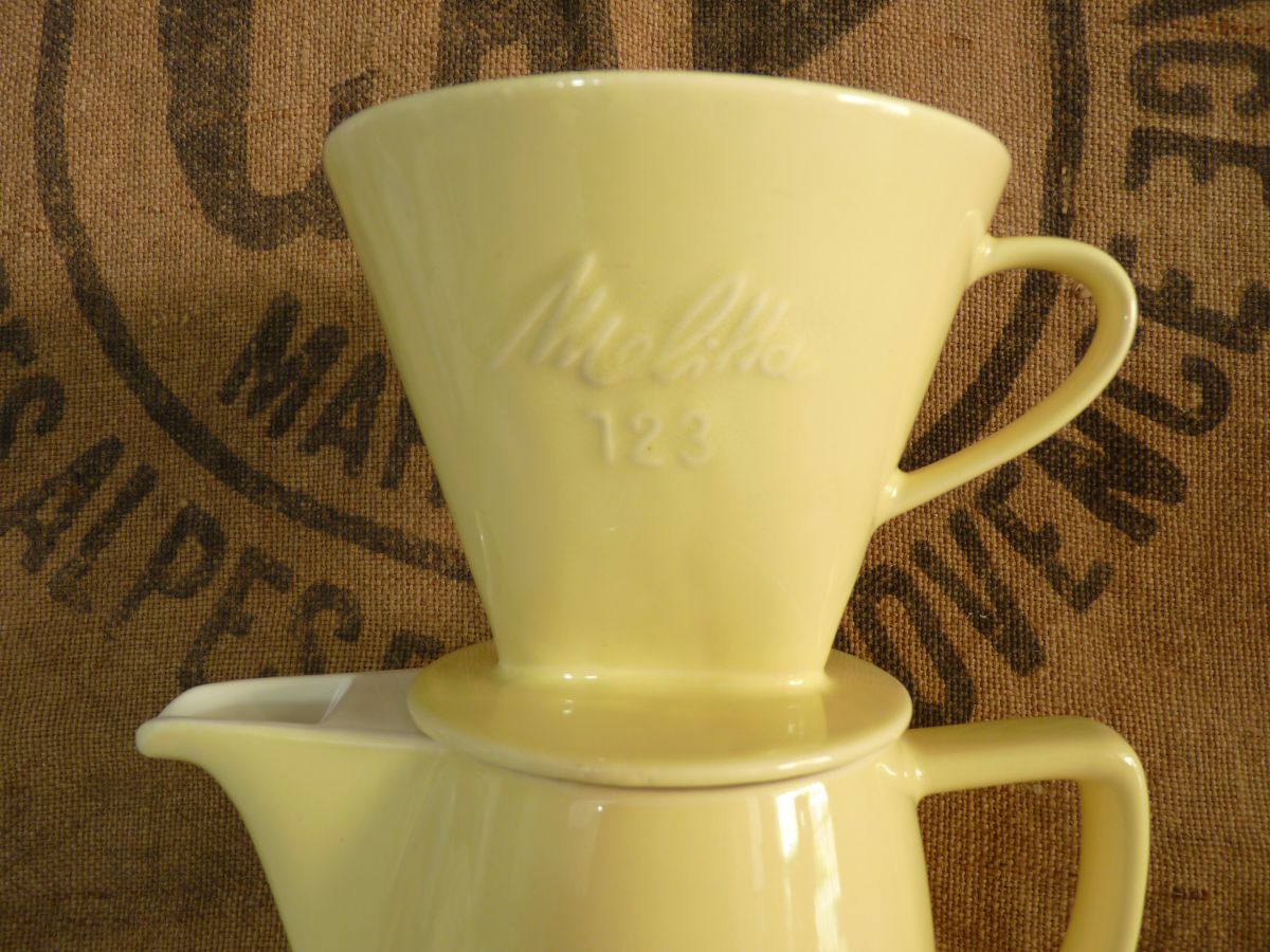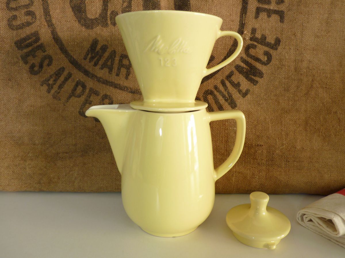 Très jolie cafetière en faïence Melitta 123, avec son porte filtre