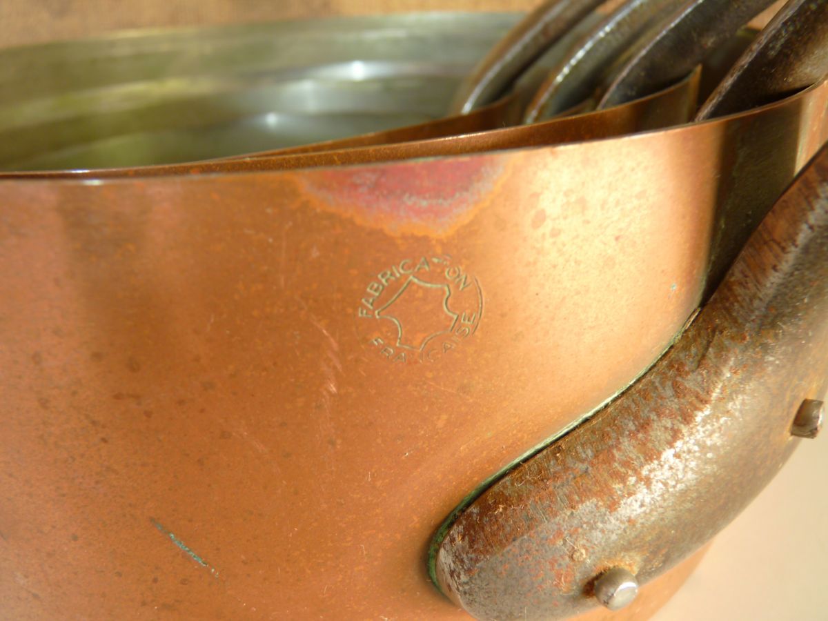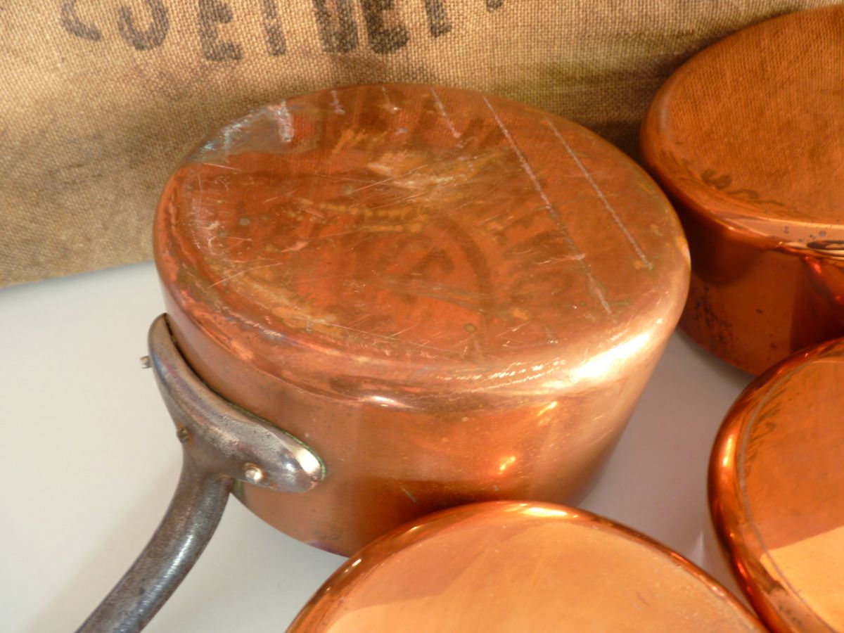 Lot de 5 casseroles " Fabrication française " en cuivre