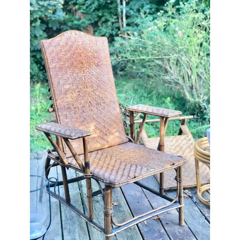 Chaise longue en osier et rotin année 30