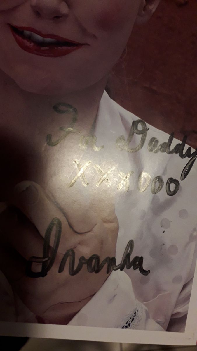 Photo signée au marqueur noire "for Daddy, xxx000 Ivanka " bon état , signature originale (pas reproduction) 23cm x 16cm apposée sur la marionnette d'Ivanka (fille du président Donald Trump). Provient du stock de photos des Guignols de l'Info de Canal+ , débarrassé par Emmaus. Je ne suis pas expert en signature mais elle me semble authentique. Envoi à partir du 25/11. Port en sus