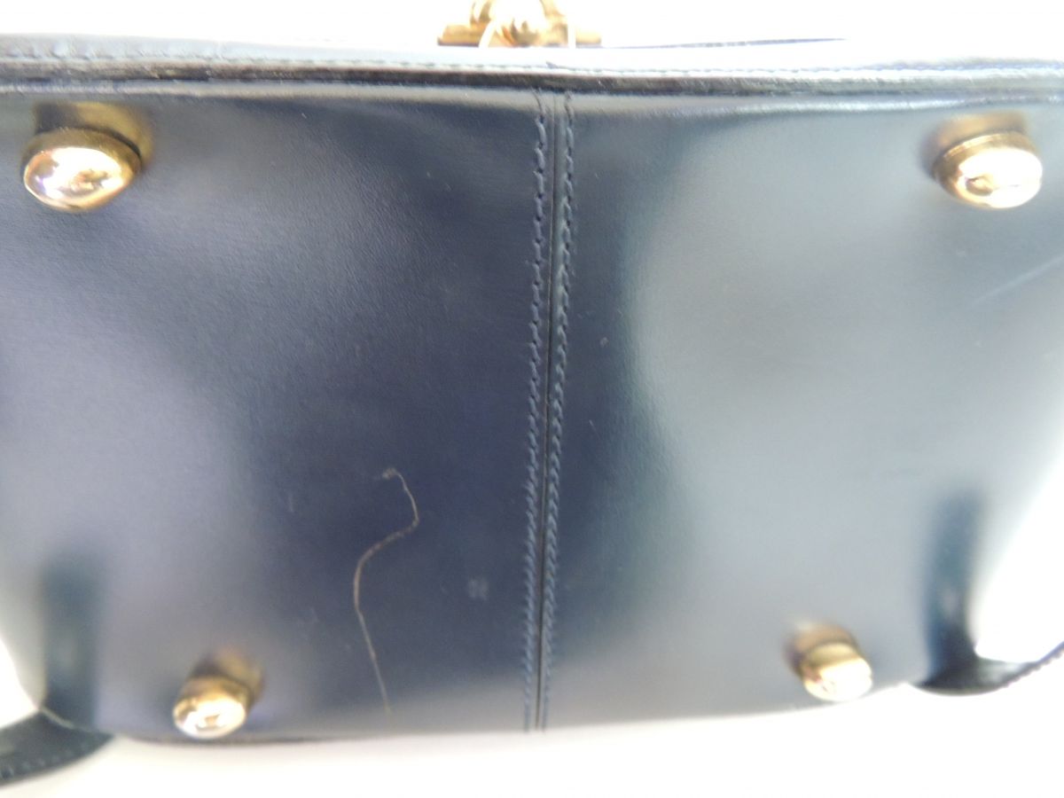 SAC à dos vintage Céline en cuir bleu marine et interieur cuir rouge . Quelques rayures legeres (photo) mais très bon état au vu de son age!