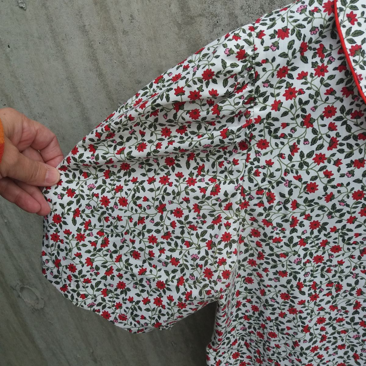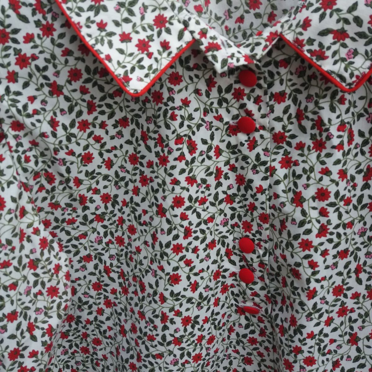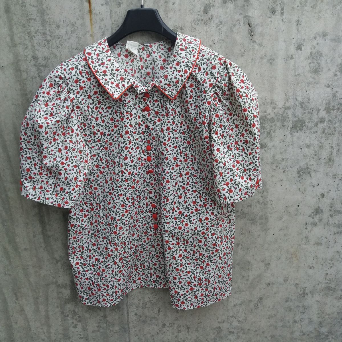 Chemisier en coton, motif fleuri, manches courtes et bouffantes. Etat proche du neuf, très joli finition.
