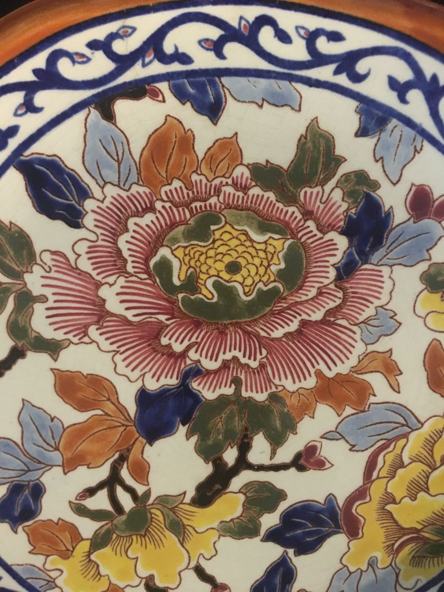 Assiette Pivoine de la manufacture de Gien, diamètre 22 cm