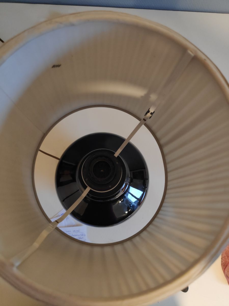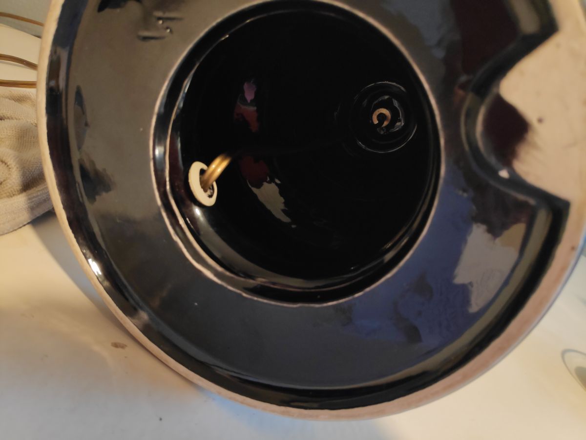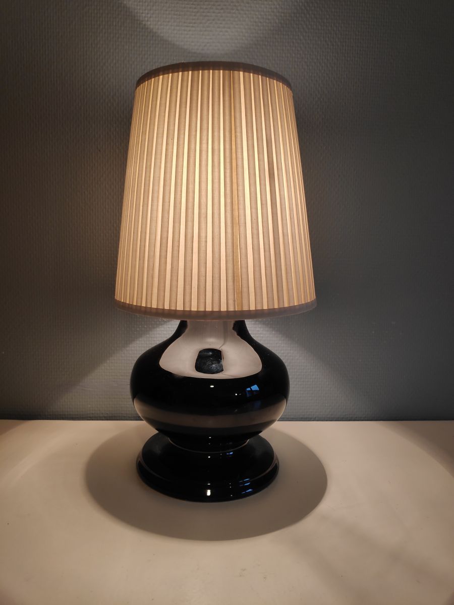 lampe à poser pied céramique noir et abat-jour tissu beige