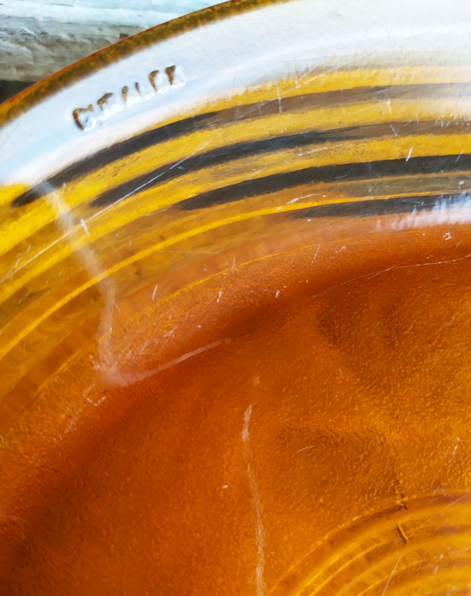 Lignes ondulées dans le fond de l'assiette et sur le pourtour.
