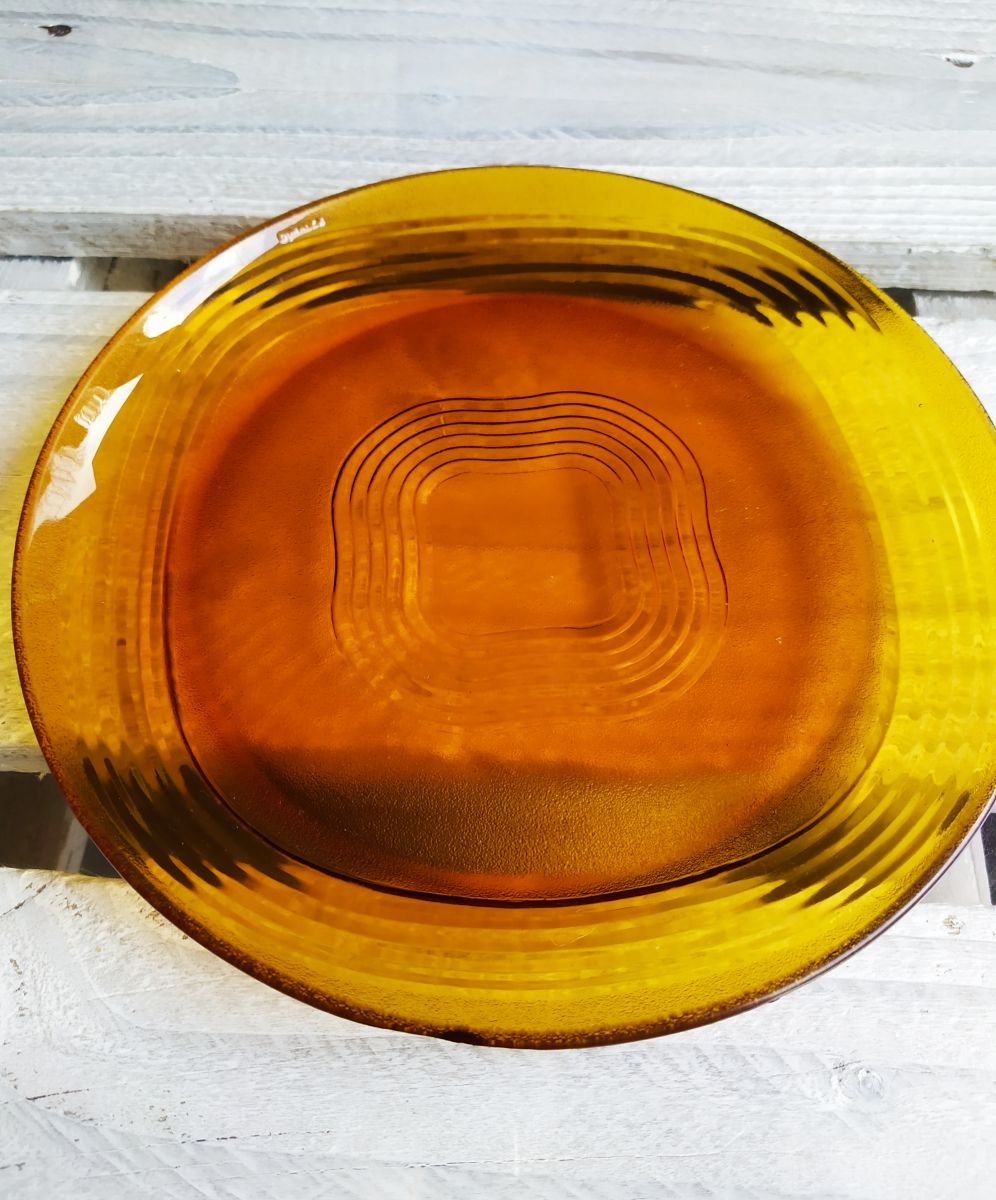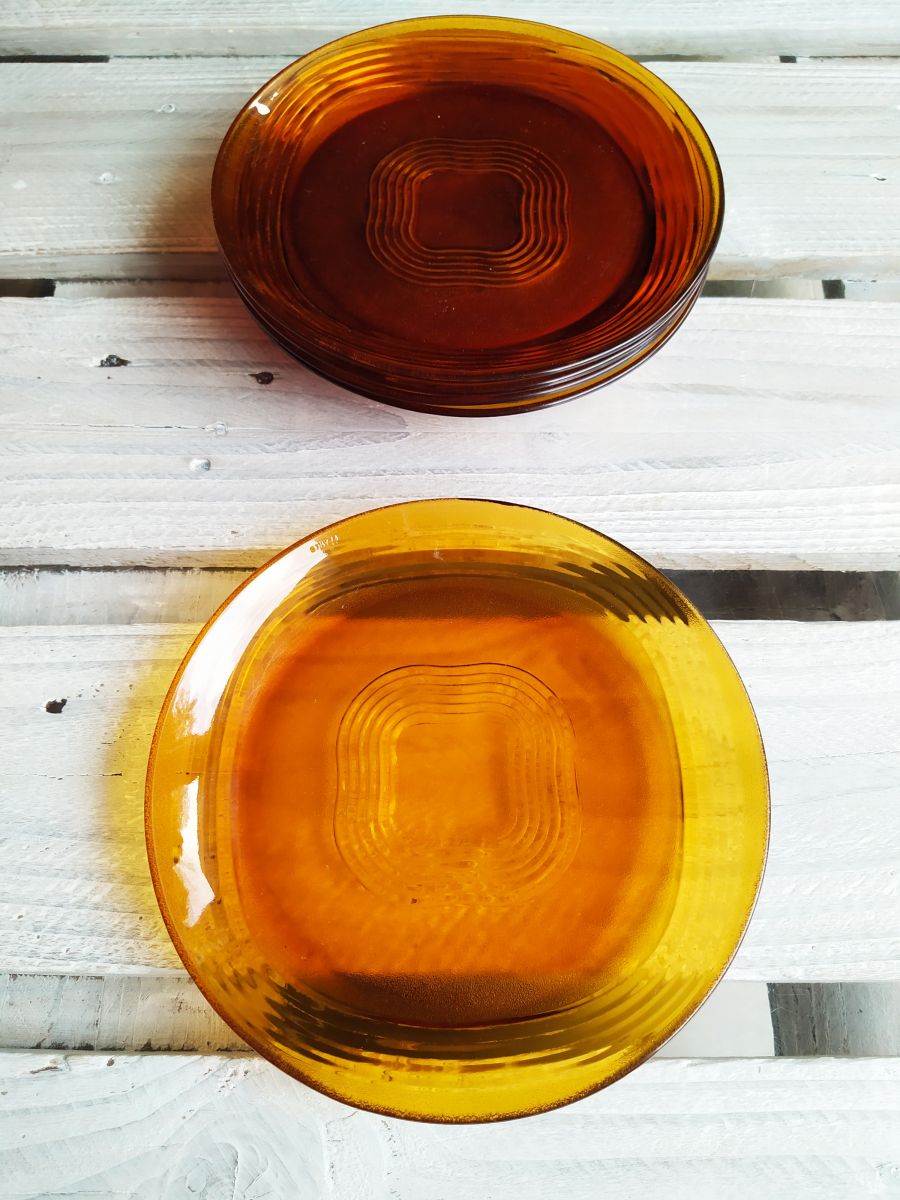 Lot de 6 assiettes plates Duralex ambrées marron, années 70