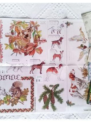De beaux modèles automnales, floraux , sur le thème des explorations marine, des locomotives , de la nature - avec arbres et feuillages , plusieurs races de chiens et bien d'autres ....