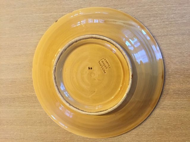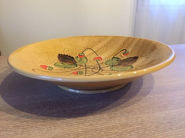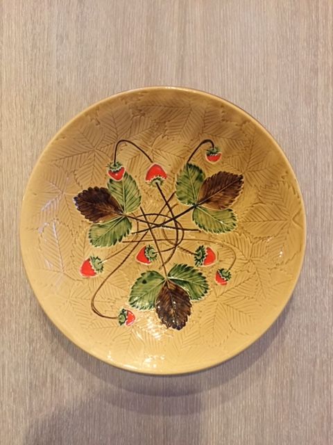 Jolie coupe vintage avec son décor de fraises, en barbotine de Poet Laval