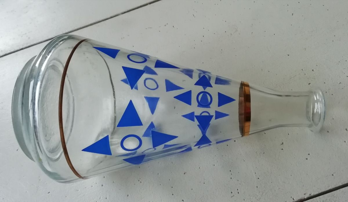 Carafe en très bon état avec liserets dorés et motifs géométriques bleus esprit art déco.