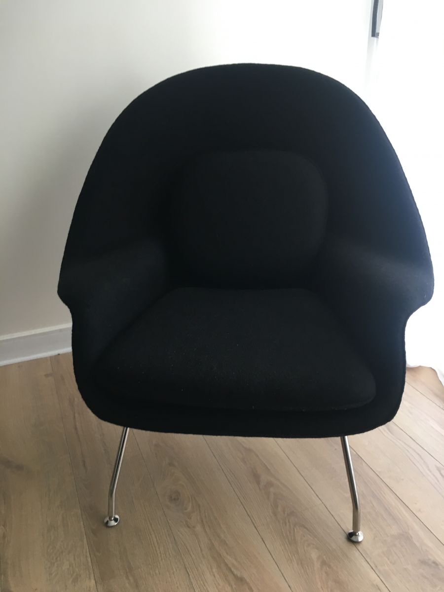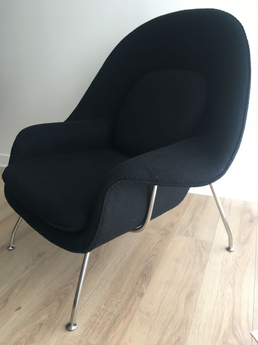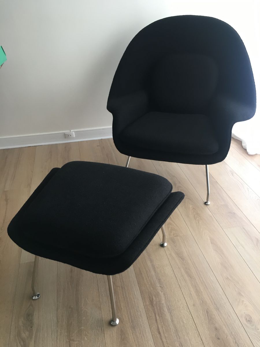 Fauteuil coque design et son Ottoman tissu noir